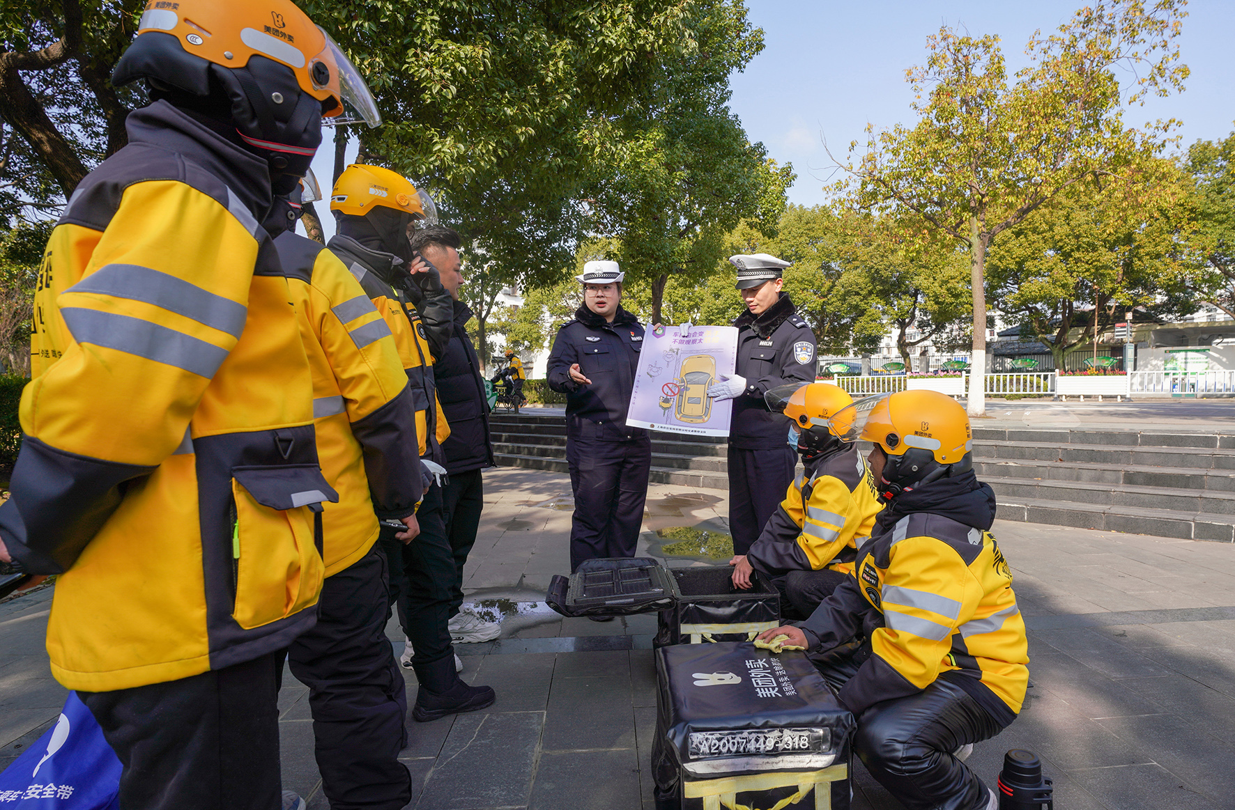 1月16日,上海市公安局崇明分局交警支隊(duì)民警來(lái)到轄區(qū)外賣員聚集地,開展了一場(chǎng)針對(duì)外賣騎手的交通安全宣講活動(dòng)。