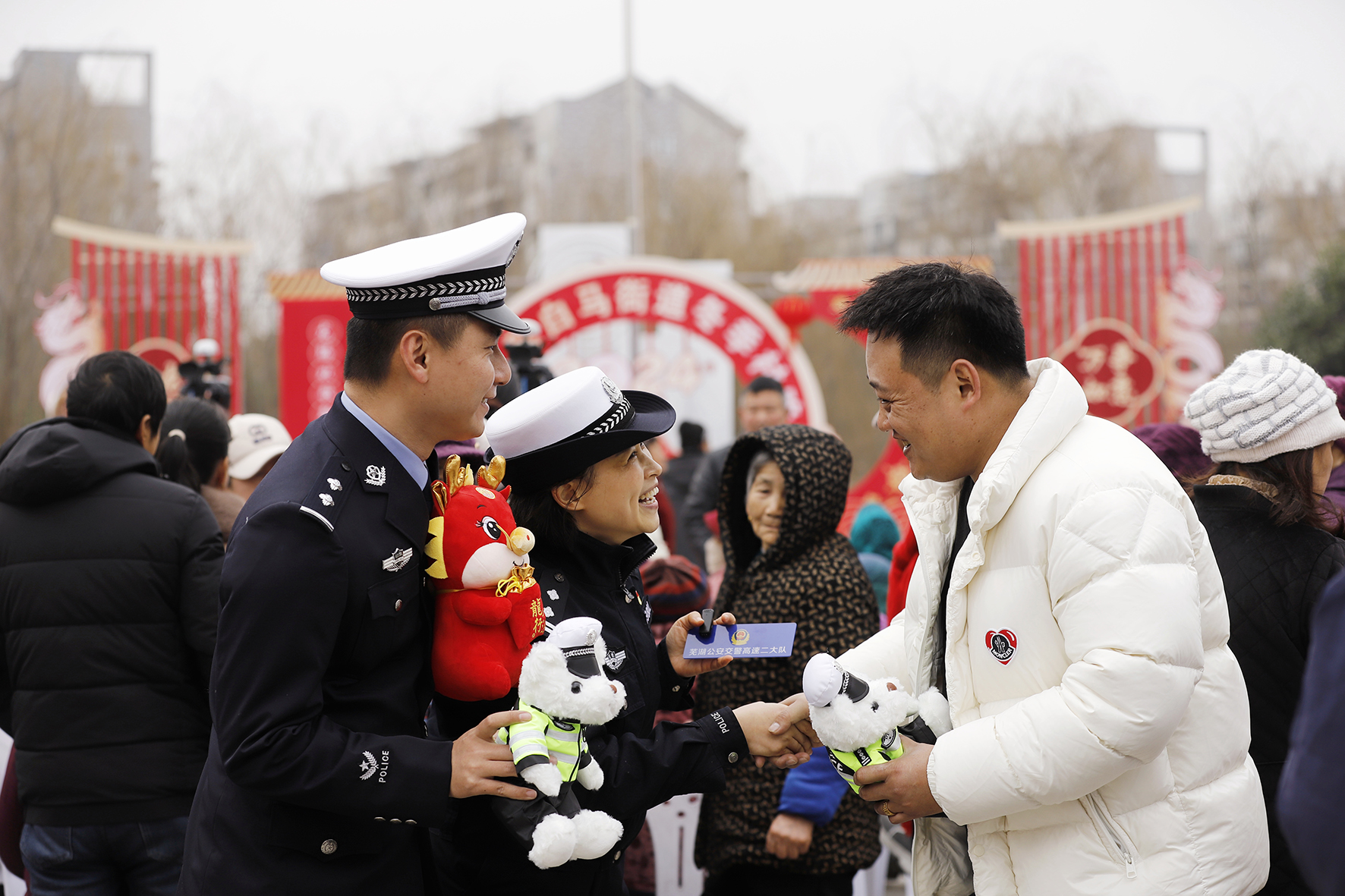 1月17日,安徽省蕪湖市公安局交警支隊(duì)高速二大隊(duì)民警走進(jìn)弋江區(qū)白馬街道冬季“村晚”現(xiàn)場,通過“交通知識你來答‘熊熊’‘火火’過大年”活動,向廣大群眾宣傳“一盔一帶”、高速公路安全行車等交通安全知識,共迎“春運(yùn)”,共祝平安。