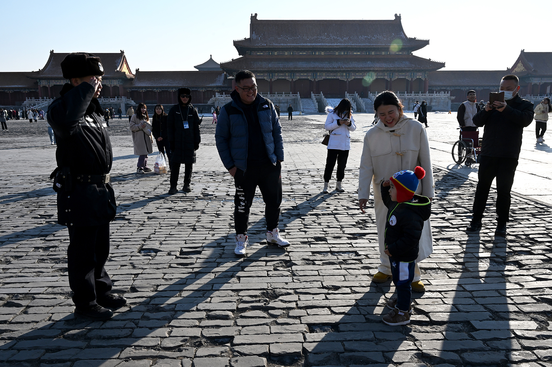 太和殿前,一位與家人走散的老人向民警尋求幫助。故宮派出所組建了“皇城小警”尋人找物微信群,搭建起守護(hù)游客安全的便民服務(wù)網(wǎng)絡(luò)。