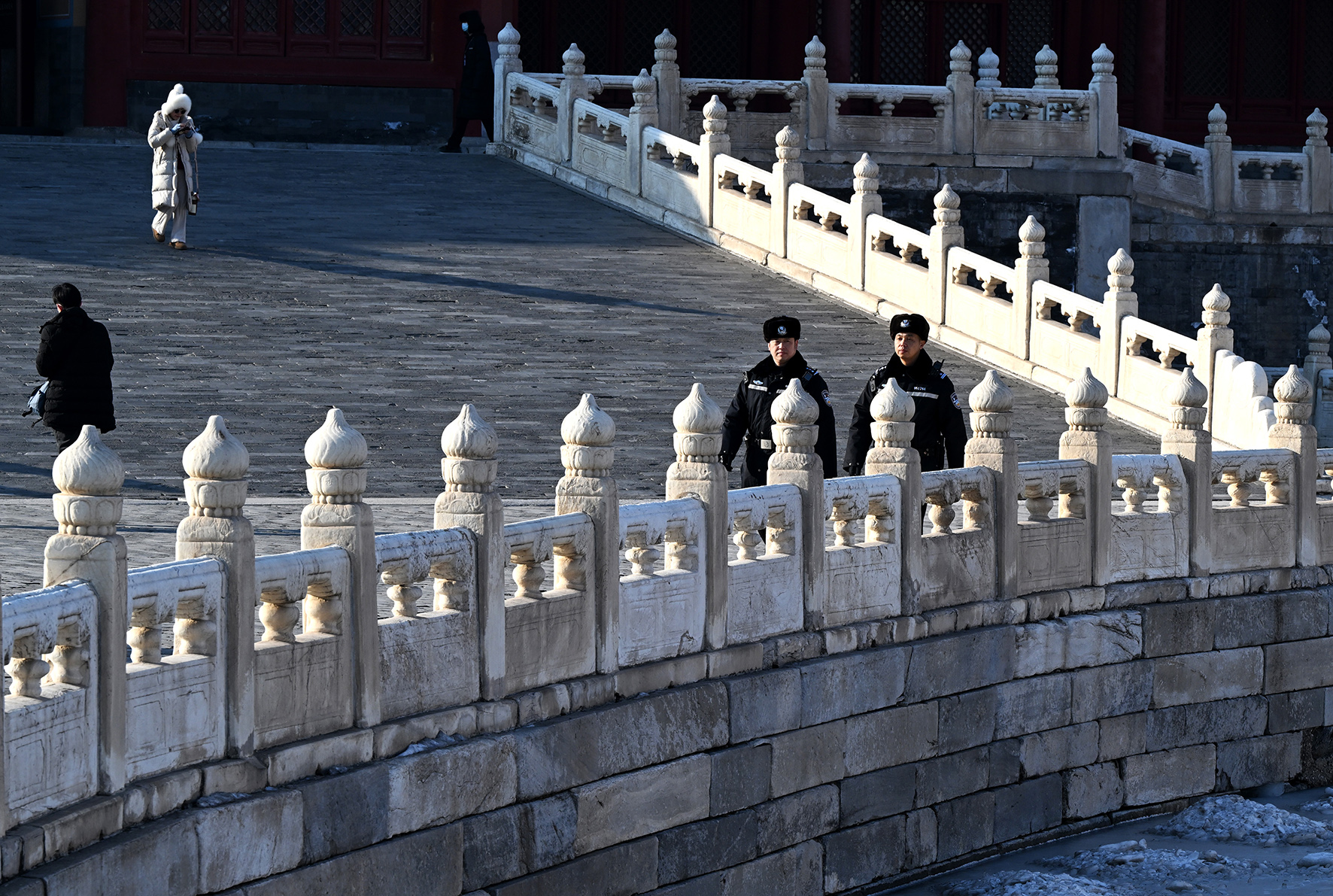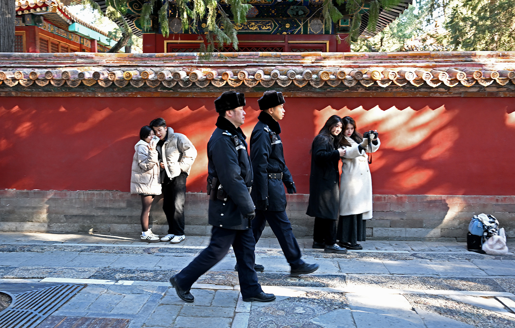 民警在金水橋一側(cè)的熙和門附近巡邏。故宮內(nèi)的各個(gè)門廊、殿宇以及角落都是民警日常巡邏的區(qū)域。