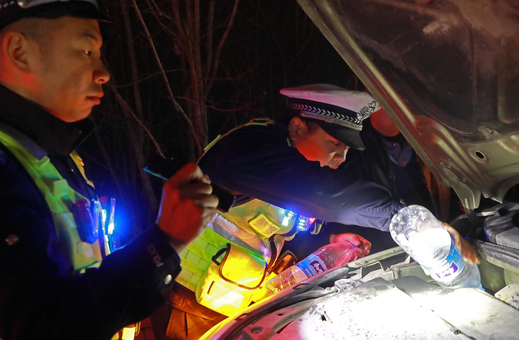 2月12日晚,新疆哈密邊境管理支隊白山泉邊境檢查站全體民輔警堅守崗位,對過往車輛人員進行檢查。