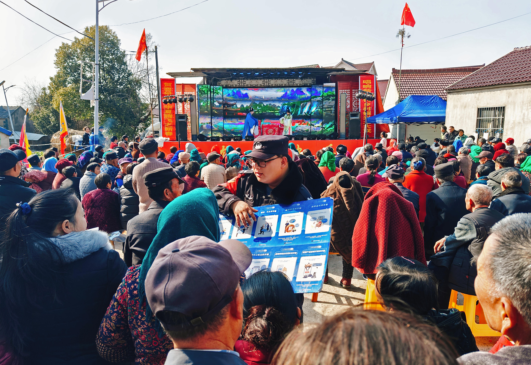 2月11日,安徽省當涂縣公安局烏溪派出所依托鄉(xiāng)村大舞臺等文藝活動,深入開展普法宣傳。