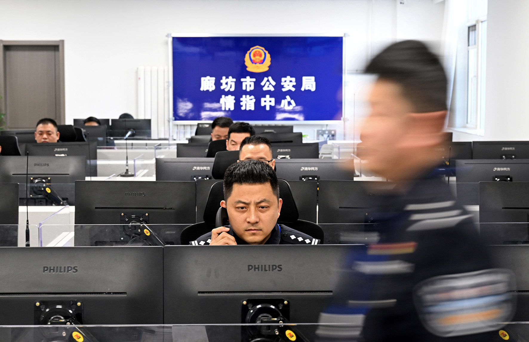2月10日,河北省廊坊市公安局110指揮中心值班民警堅守工作崗位,耐心細致地接聽群眾的每一起報警電話,快速穩(wěn)妥調(diào)度處置每一起警情。