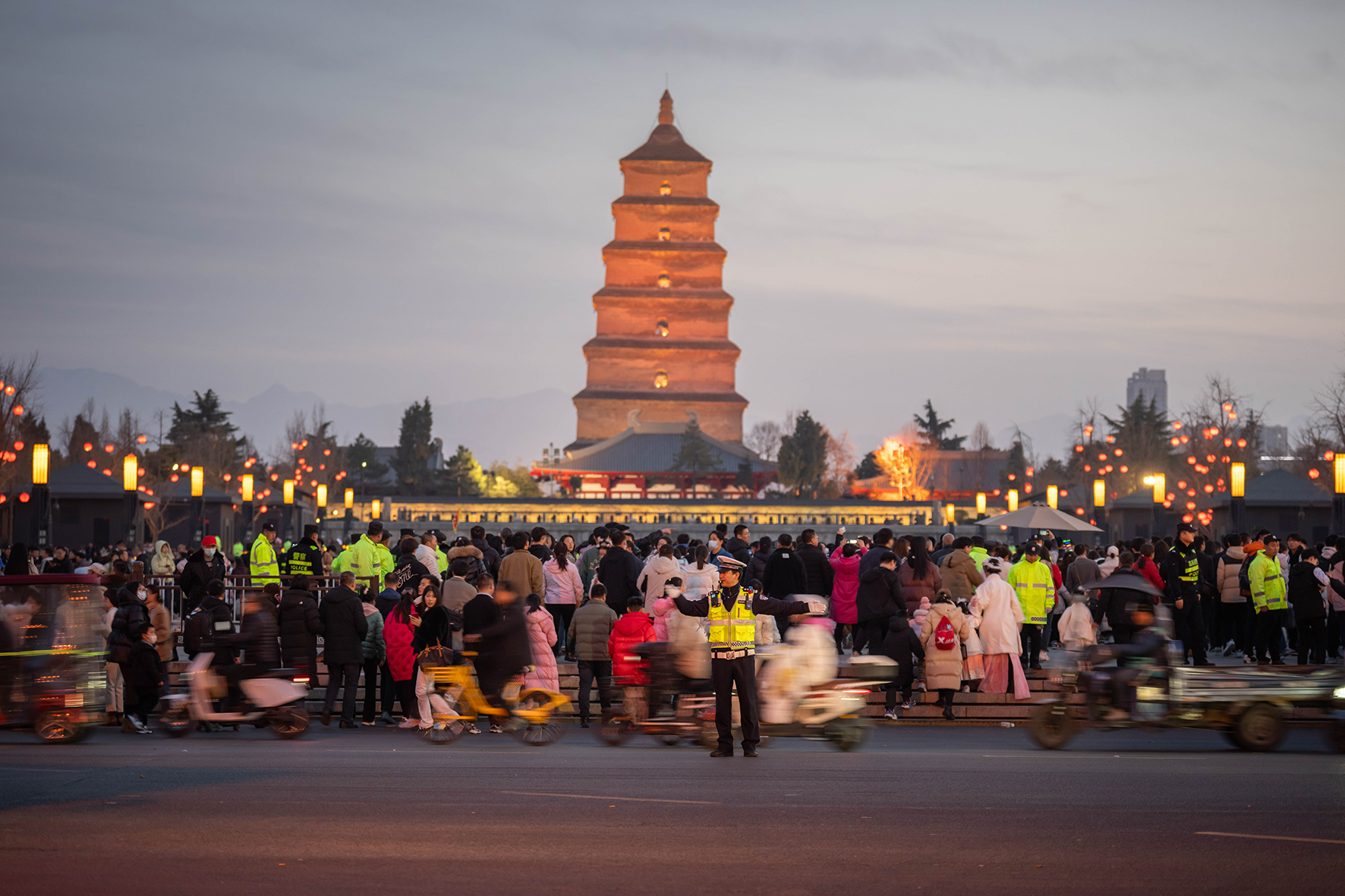 2月15日,陜西省西安市公安局交警支隊全警上路,確保道路交通安全及市民出行安全。