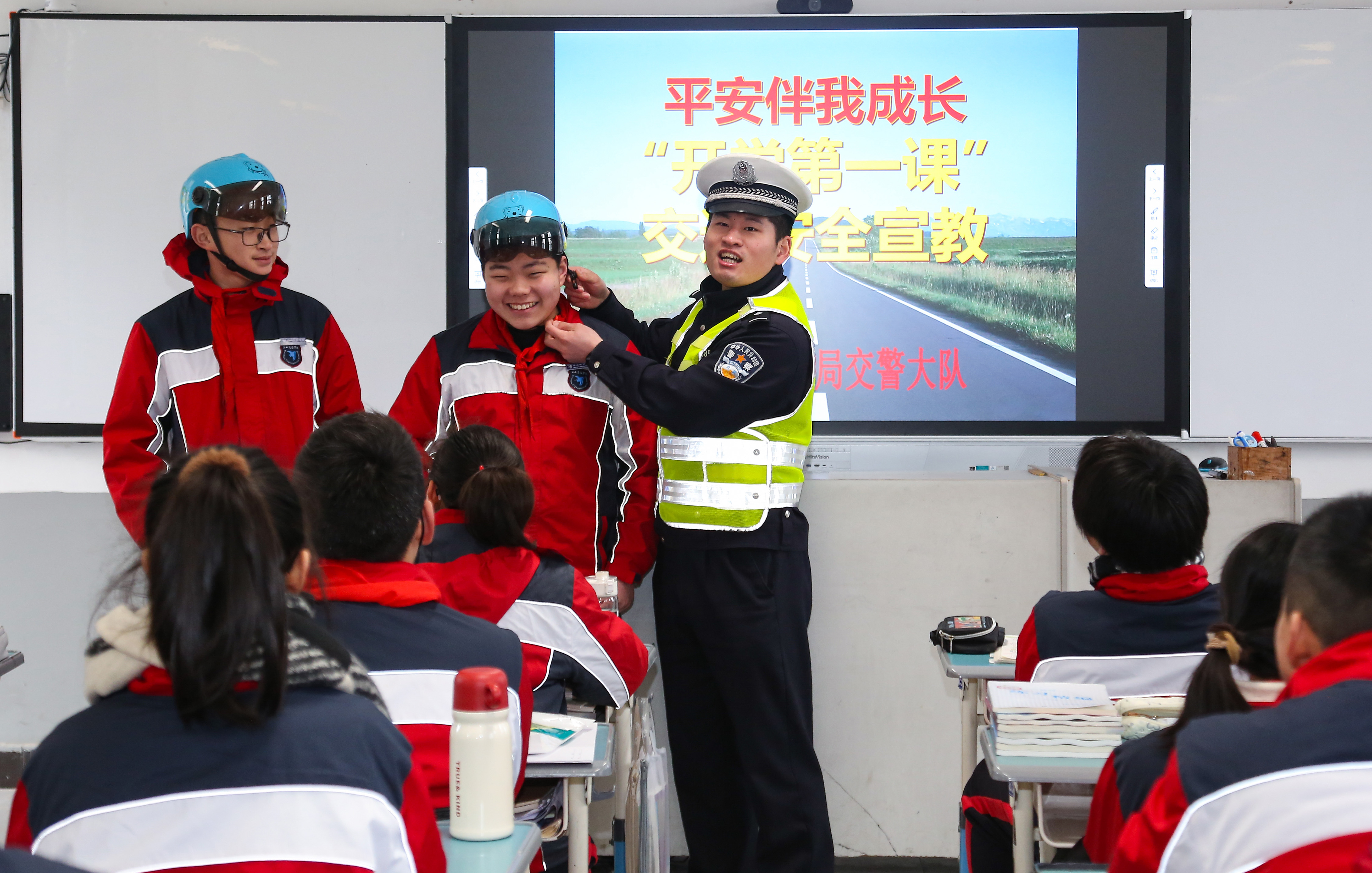 2月26日,浙江省岱山縣公安局交警大隊(duì)民警來到高亭鎮(zhèn)實(shí)驗(yàn)學(xué)校,開展“平安伴我成長”開學(xué)第一課活動(dòng)。
