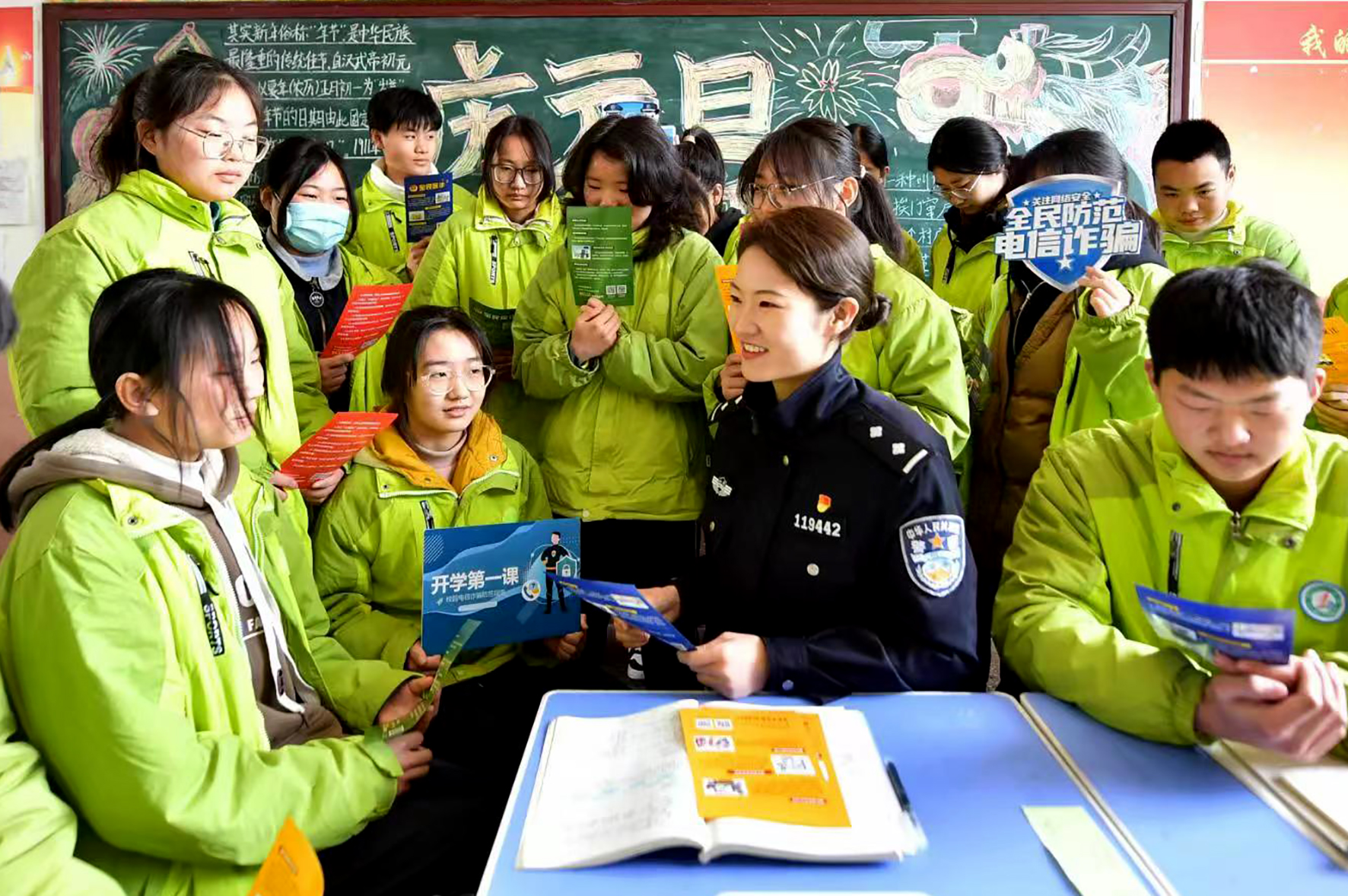 2月26日,山東省棗莊市公安局臺(tái)兒莊分局組織民警走進(jìn)轄區(qū)中小學(xué)校,開展“開學(xué)反詐第一課”宣傳活動(dòng)。