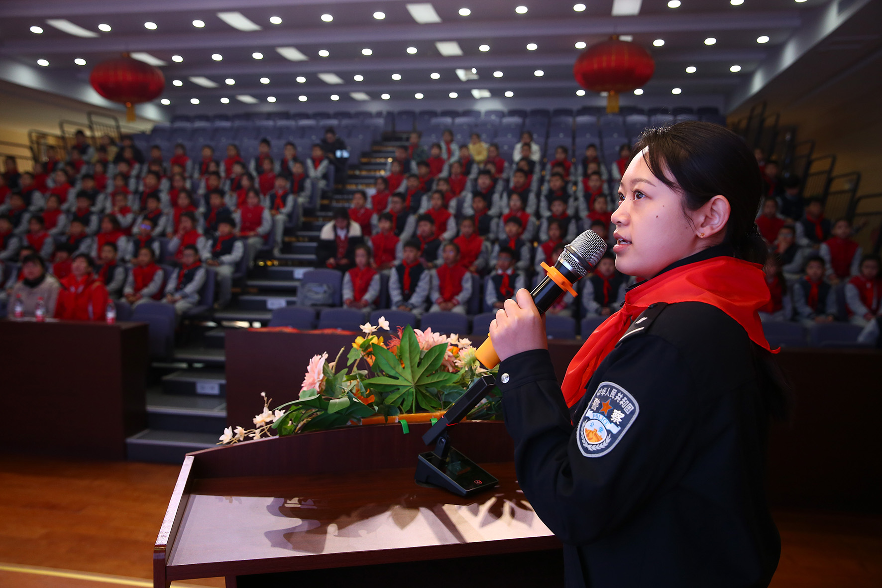 2月26日,山東省濟(jì)南市公安局市中區(qū)分局大觀園派出所民警來到經(jīng)五路小學(xué),給學(xué)生們上安全課。