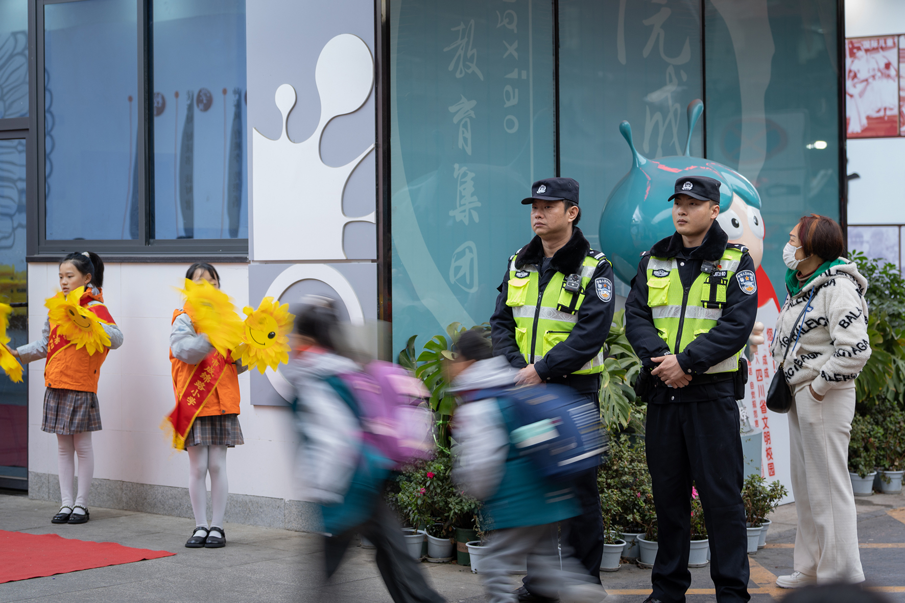 2月26日,開學(xué)第一天。浙江省臺(tái)州市公安局黃巖分局各派出所民警走上“護(hù)學(xué)崗”,加大巡邏管控力度、維持校園周邊秩序。
