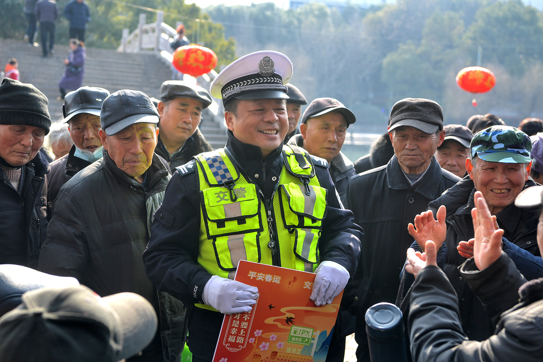 2月25日,在安徽省巢湖市洗耳池公園,巢湖市公安局交警大隊(duì)民警為市民講解道路交通安全常識。