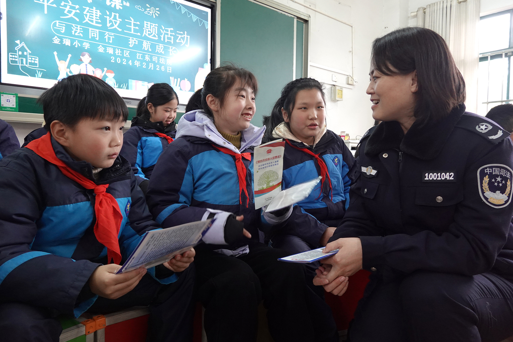 2月26日下午,安徽省馬鞍山市花山區(qū)江東司法所聯(lián)合江東街道金瑞社區(qū),在金瑞小學開展“與法同行 護航成長”平安建設主題活動。