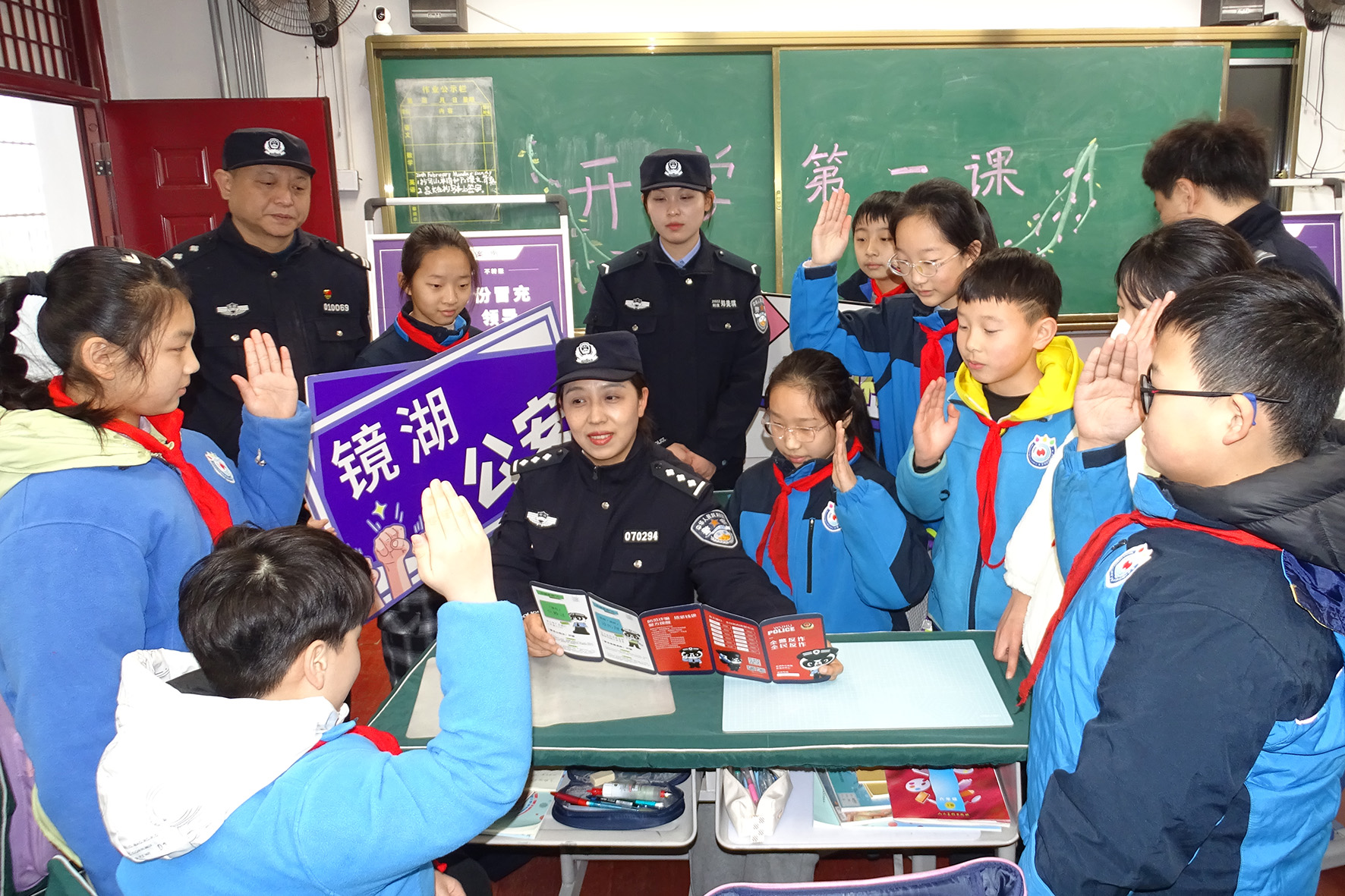 2月26日,安徽省蕪湖市公安局鏡湖分局組織開展“開學第一課”普法宣傳活動。