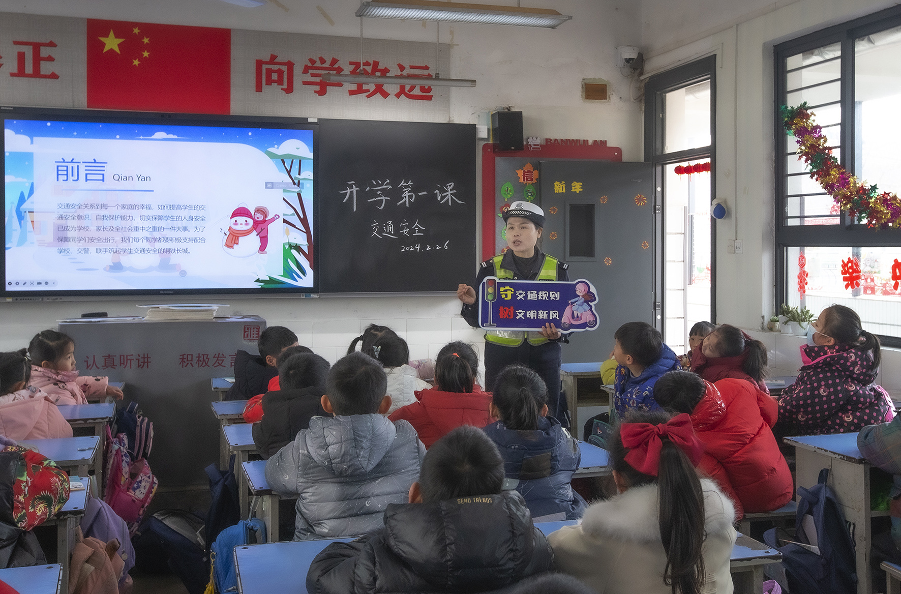 2月26日,四川省綿陽市公安局交警支隊直屬一大隊民警走進轄區(qū)校園開展“開學第一課”交通安全宣傳活動。
