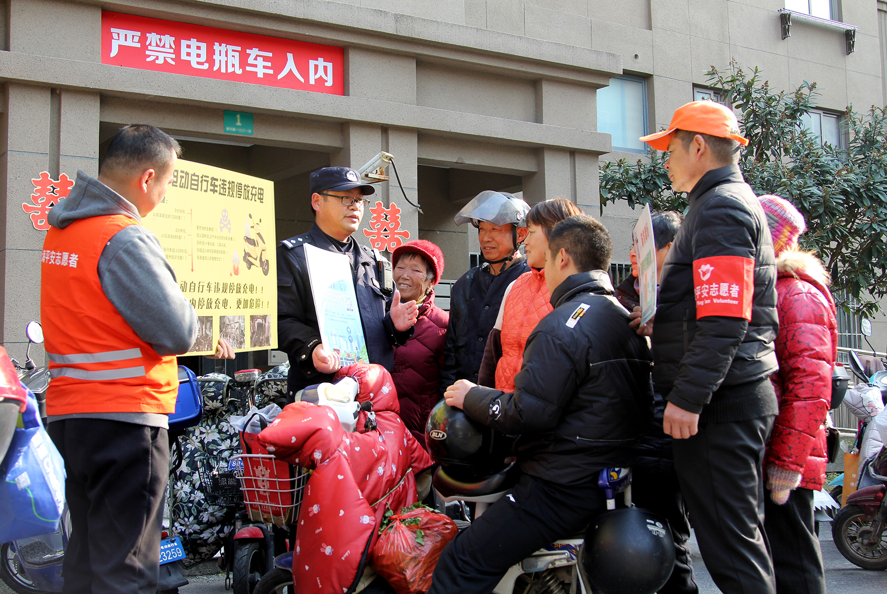 連日來(lái),上海市公安局嘉定分局組織社區(qū)民警會(huì)同居(村)委、物業(yè)和平安志愿者等各社會(huì)安防力量,全面加強(qiáng)高層住宅小區(qū)、沿街商鋪等電動(dòng)自行車入樓停放、充電(飛線)和非法改裝銷售等行為的巡查群防、整治查處和安全知識(shí)宣傳。