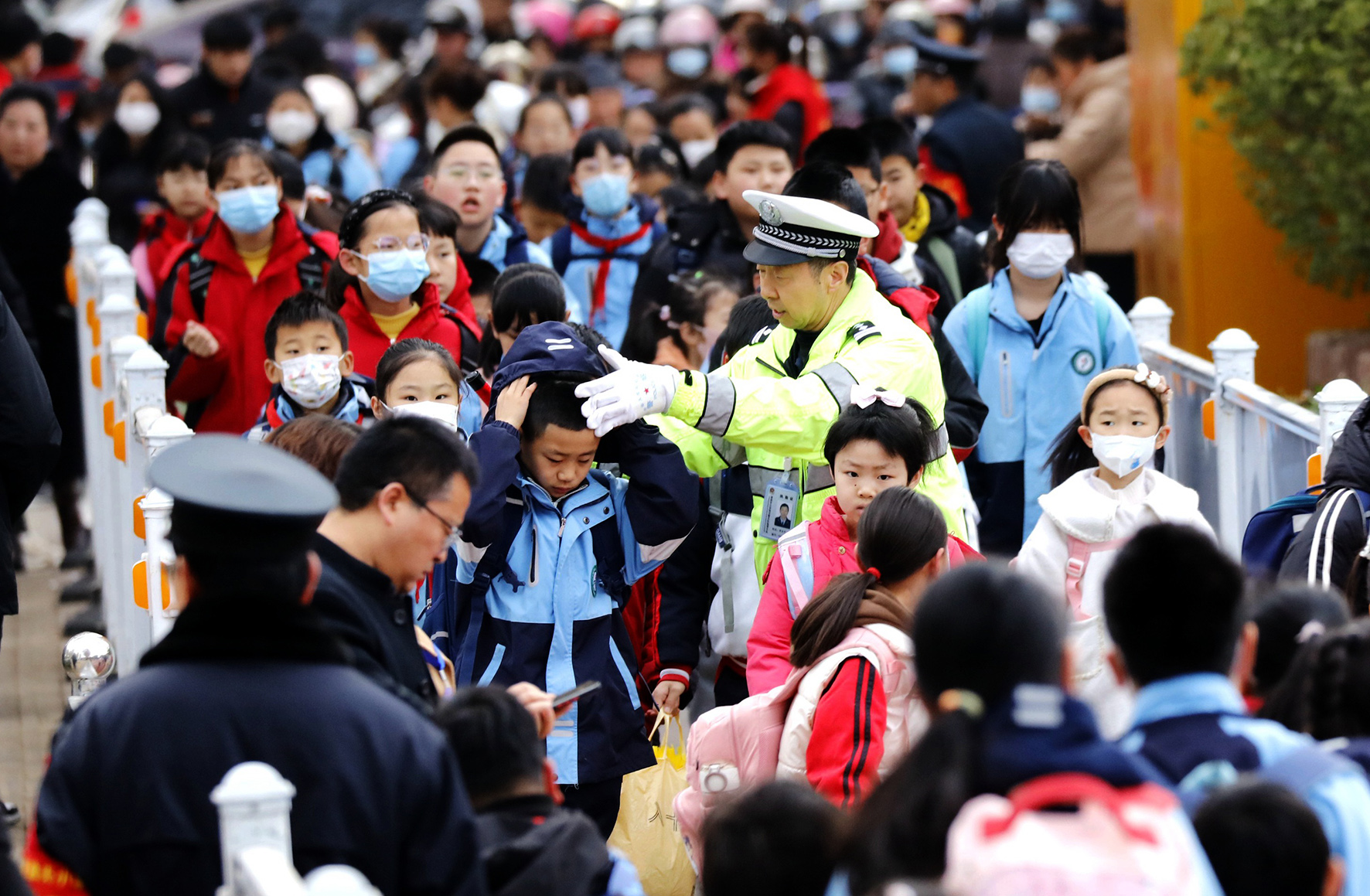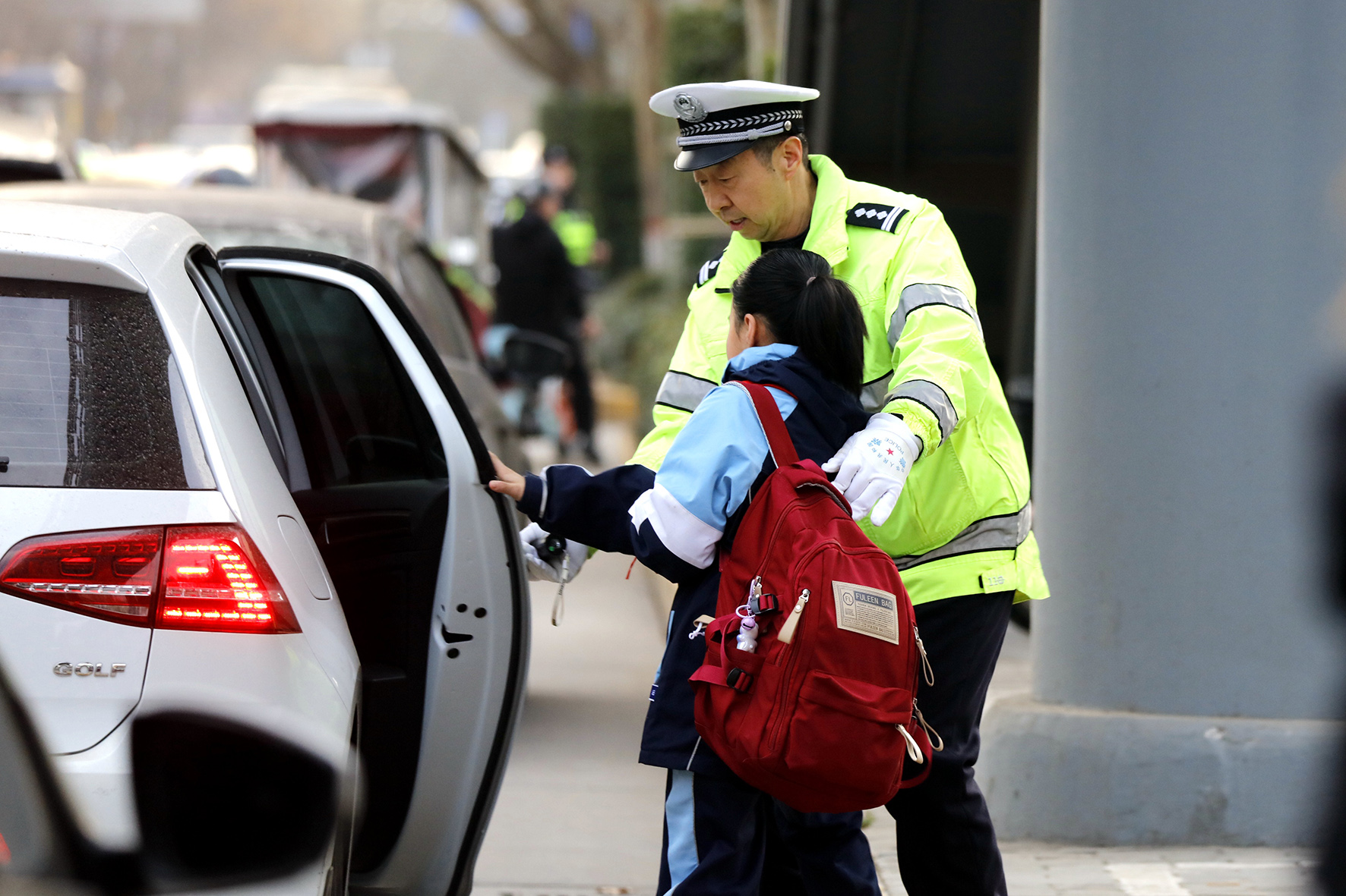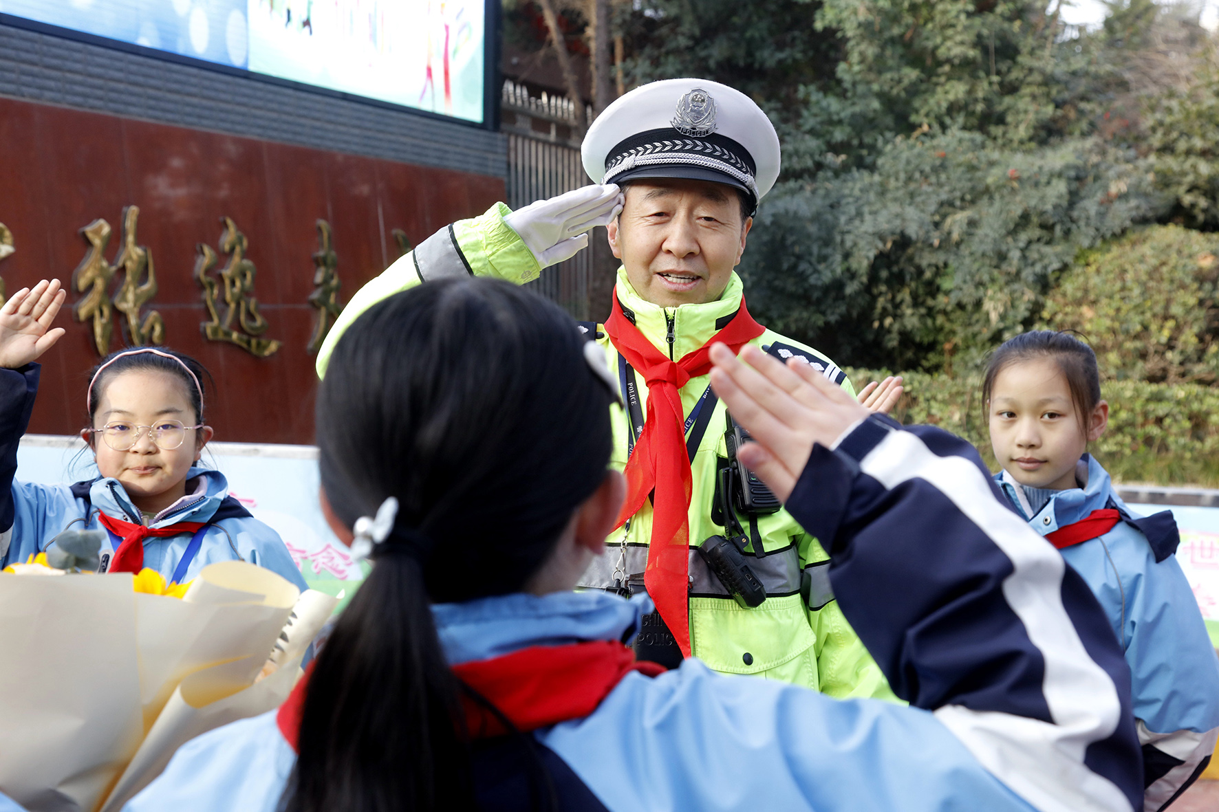 3月6日,是陜西省渭南市公安局交警支隊臨渭大隊60歲老民警李太平退休前的最后一班護學崗。從警23年的他曾經是一名軍人,轉業(yè)到臨渭交警大隊后,從事交通管理工作最多的就是與學校的孩子們打交道,每周他都會走上課堂給孩子們宣傳交通安全知識,每天早上7點會準時站到學校門前,護送學生安全上學。