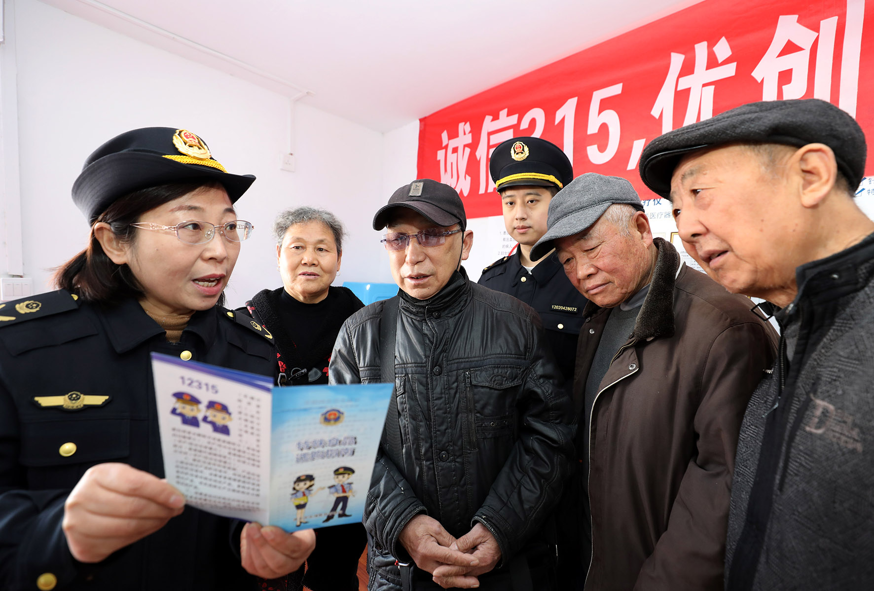 3月10日,安徽省淮北市相山區(qū)東山市場(chǎng)監(jiān)管所工作人員,在轄區(qū)向老年人進(jìn)行科學(xué)消費(fèi)宣傳。