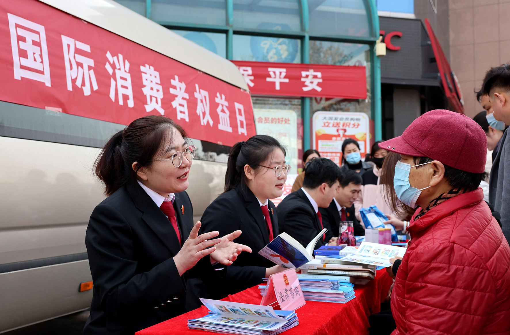 在“3?15”國際消費者權(quán)益日來臨之際,3月14日,山東省棗莊市市中區(qū)人民法院知識產(chǎn)權(quán)庭的法官走向街頭開展主題宣傳活動,向市民普及知識產(chǎn)權(quán)法律知識,維護(hù)消費者合法權(quán)益,提高人們的消費安全意識。