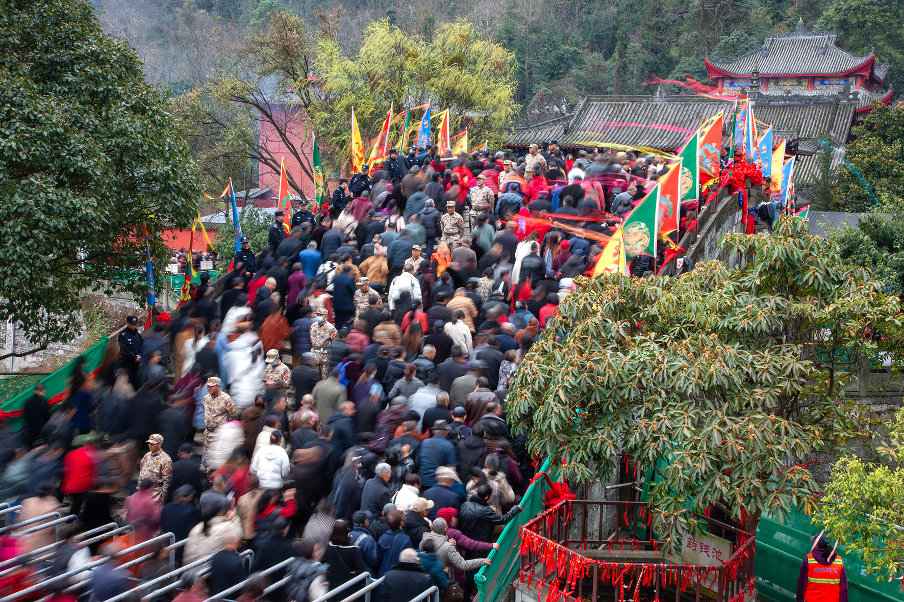3月15日,四川省綿陽市安州區(qū)雎水太平橋開展春社“踩橋”大型民俗活動。綿陽公安為確保“踩橋”活動安全,出動1390余名警力,全力維護(hù)著現(xiàn)場秩序,守護(hù)平安。