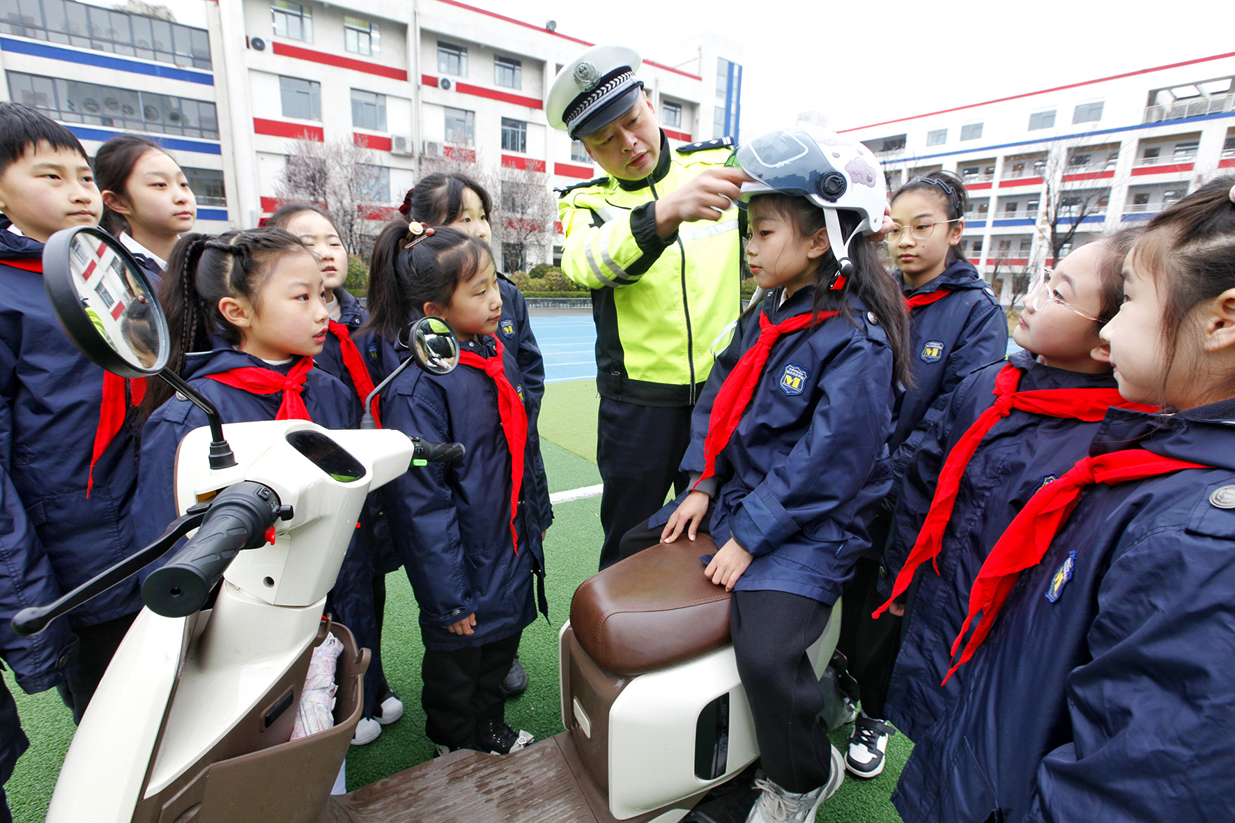3月21日,在第29個(gè)“全國(guó)中小學(xué)生安全教育日”來臨之際,安徽省合肥市公安局交警支隊(duì)公巡一大隊(duì)民警走進(jìn)習(xí)友路小學(xué),開展交通安全進(jìn)校園活動(dòng)。