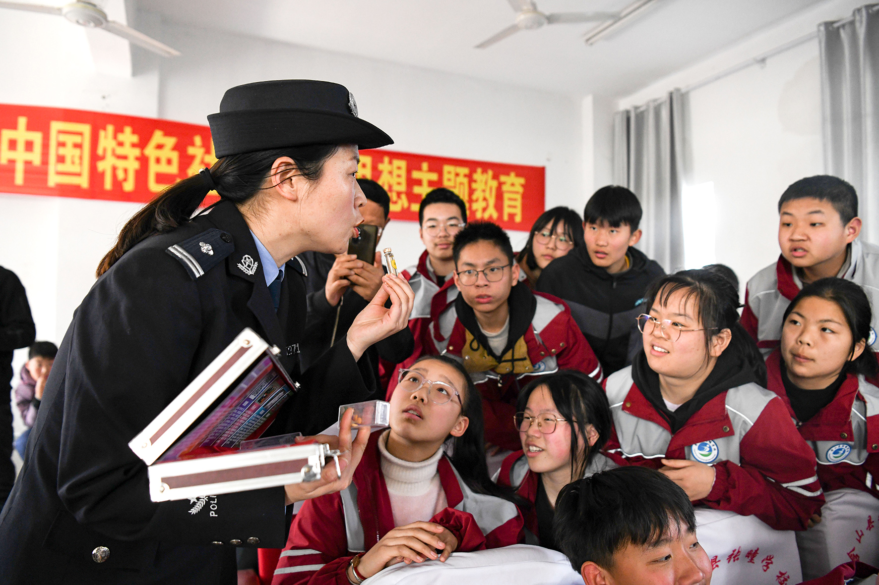 3月25日,安徽省阜南縣公安局城關(guān)派出所組織民輔警走進(jìn)轄區(qū)中小學(xué)校,向?qū)W生們宣講防溺水、防范校園欺凌、禁毒知識(shí)和網(wǎng)絡(luò)電信詐騙知識(shí)。
