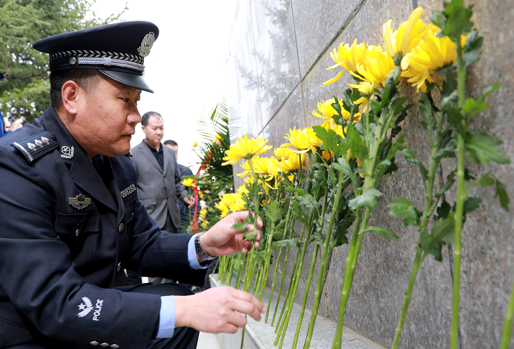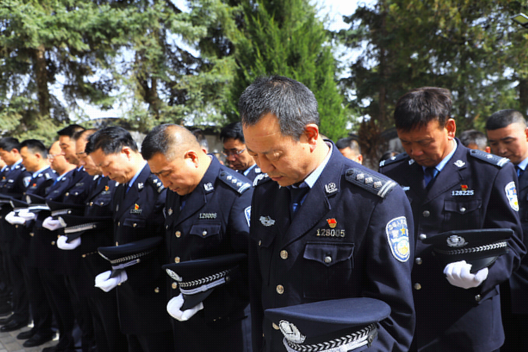 4月3日,甘肅省臨澤縣公安局民輔警與全縣黨員干部群眾舉行“鑄魂·2024清明祭英烈”祭掃活動。