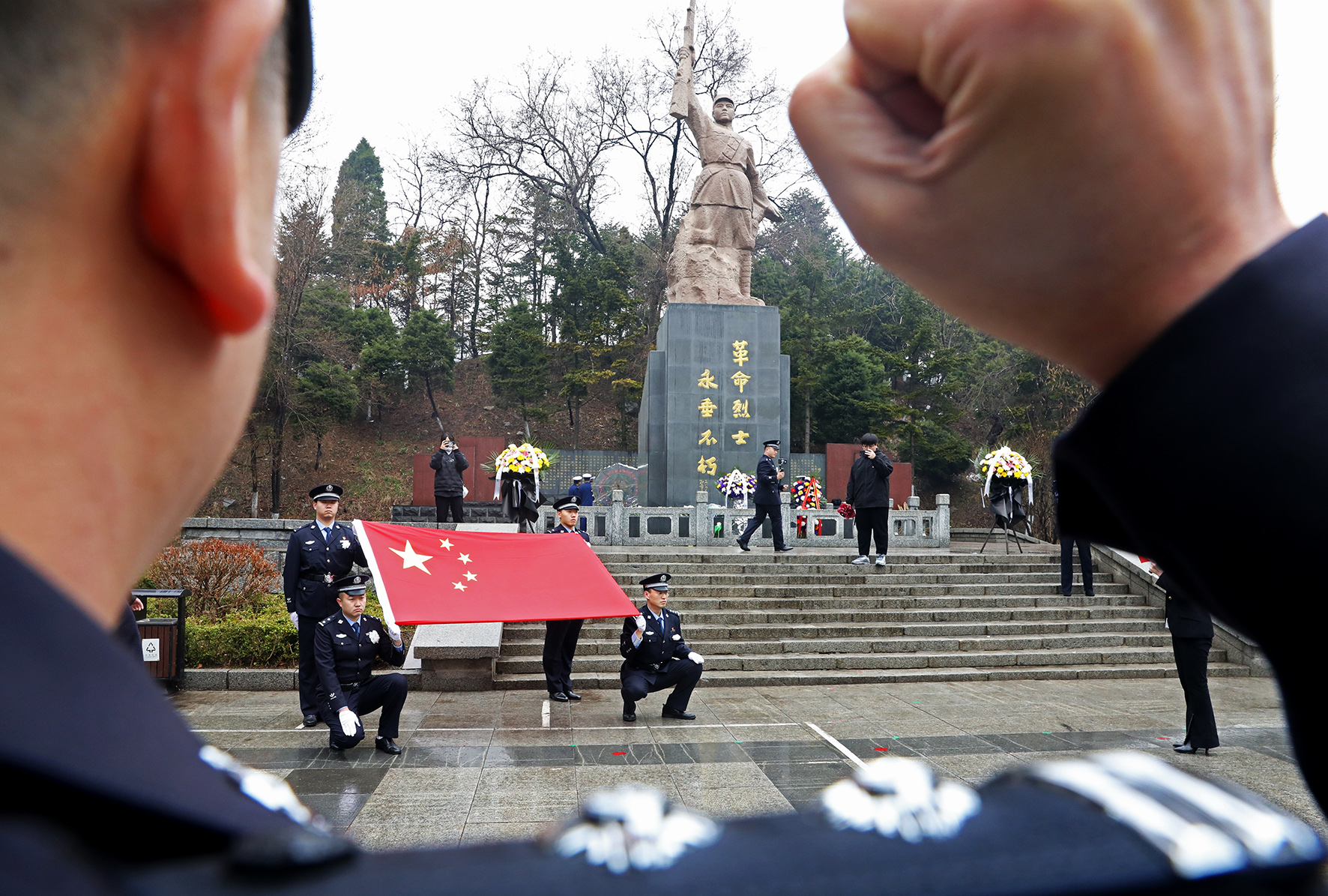4月3日,遼寧丹東港出入境邊防檢查站民警在東港市革命先烈紀念碑前開展“傳承英烈志,奮進新征程”清明公祭活動,深切緬懷英烈功績,弘揚革命先烈的崇高精神。