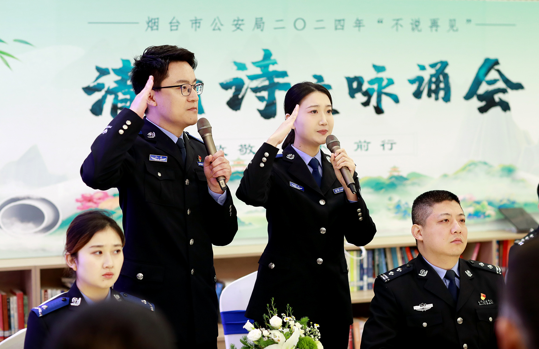 為緬懷英烈功績,凝聚奮進力量,4月3日,山東省煙臺市公安局舉辦清明詩歌詠誦會,15名民警輔警現場深情詠誦了9首原創(chuàng)作品,追憶煙臺公安英烈的英勇事跡和感人的故事。