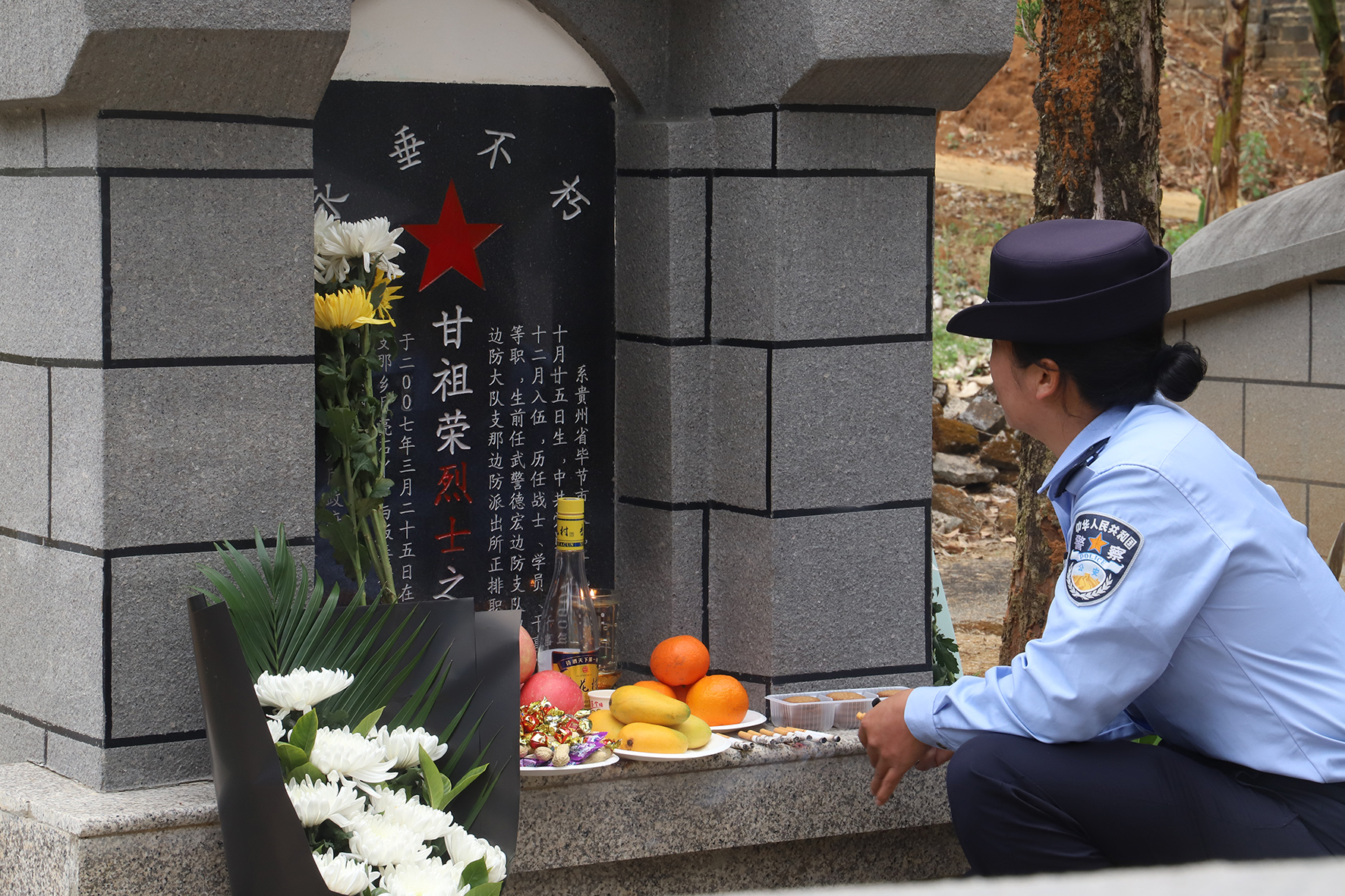 4月1日,云南出入境邊防檢查總站德宏邊境管理支隊戶拉邊境派出所民警甘玉琴來到烈士哥哥甘祖榮墓前進行祭奠。