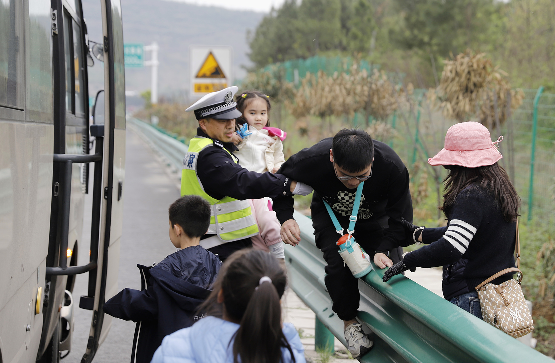 4月4日,安徽省蕪湖市公安局交警支隊(duì)高速三大隊(duì)民警在合蕪高速福山服務(wù)區(qū)附近路段,協(xié)助轉(zhuǎn)運(yùn)故障車(chē)乘客。