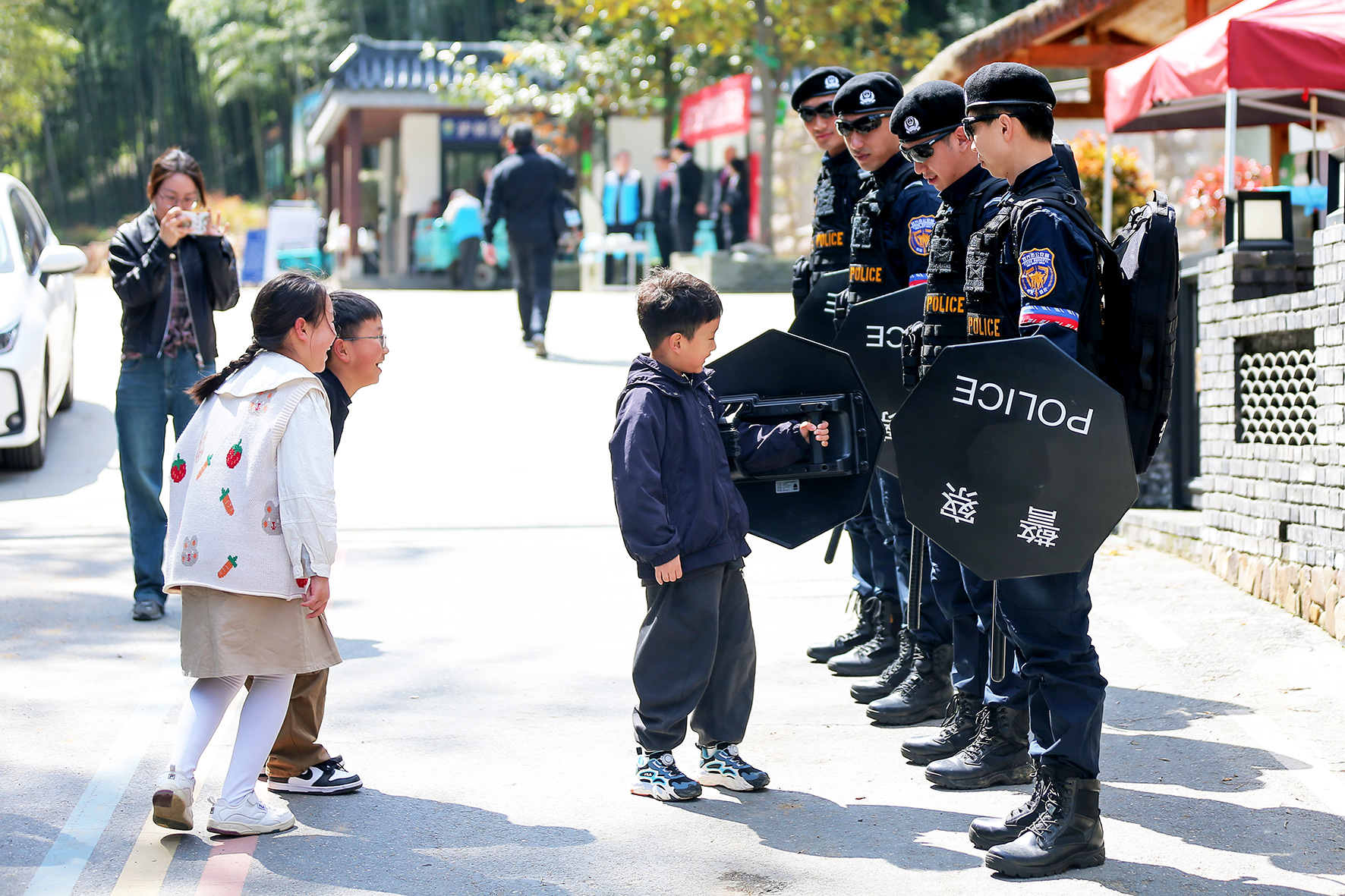 4月5日,江蘇省宜興市公安局巡特警大隊(duì)EPU警英小隊(duì)民輔警在宜興市太華鎮(zhèn)“一線天”山林景區(qū)維護(hù)秩序、疏導(dǎo)交通、服務(wù)游客。