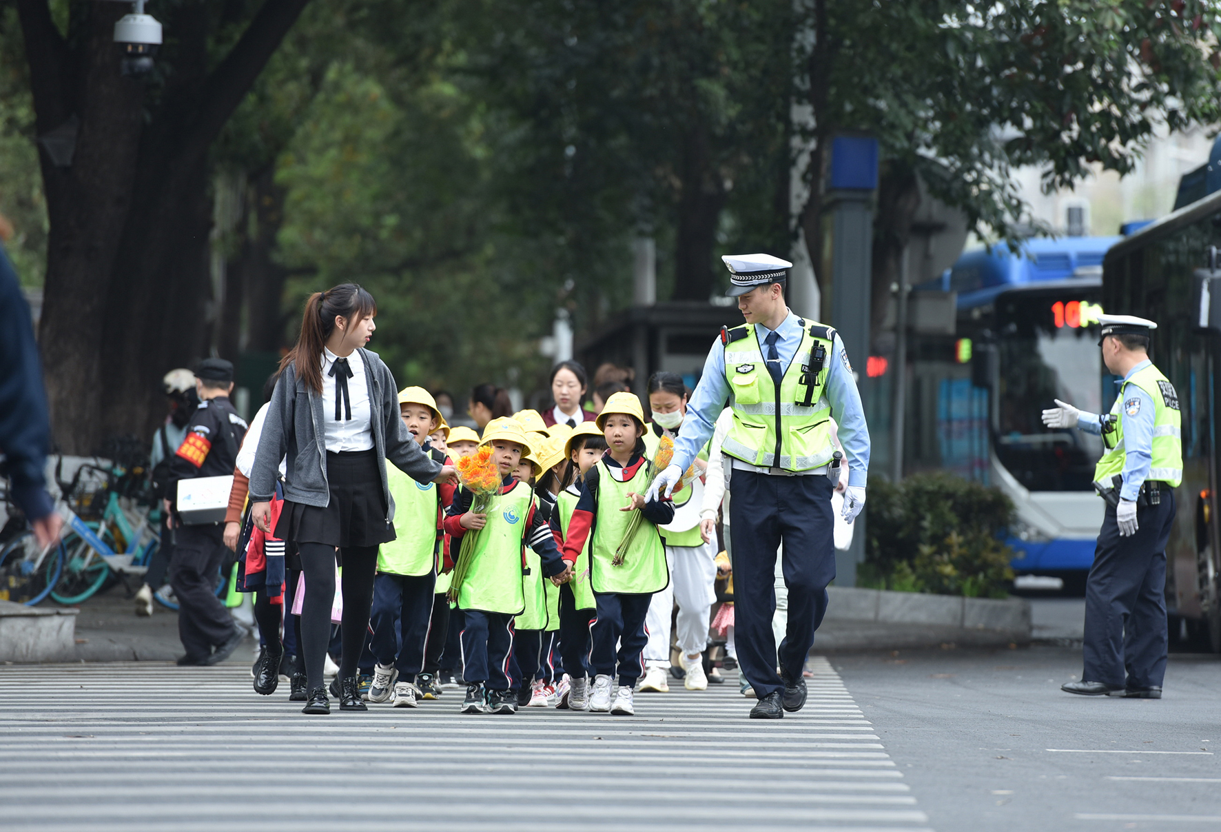 4月3日,四川省綿陽(yáng)市多所中小學(xué)、幼兒園組織師生參加緬懷革命先烈的掃墓活動(dòng)。綿陽(yáng)市交警支隊(duì)直屬一大隊(duì)提前安排,采取沿線護(hù)送、路口管控等措施,確保掃墓師生的交通安全。