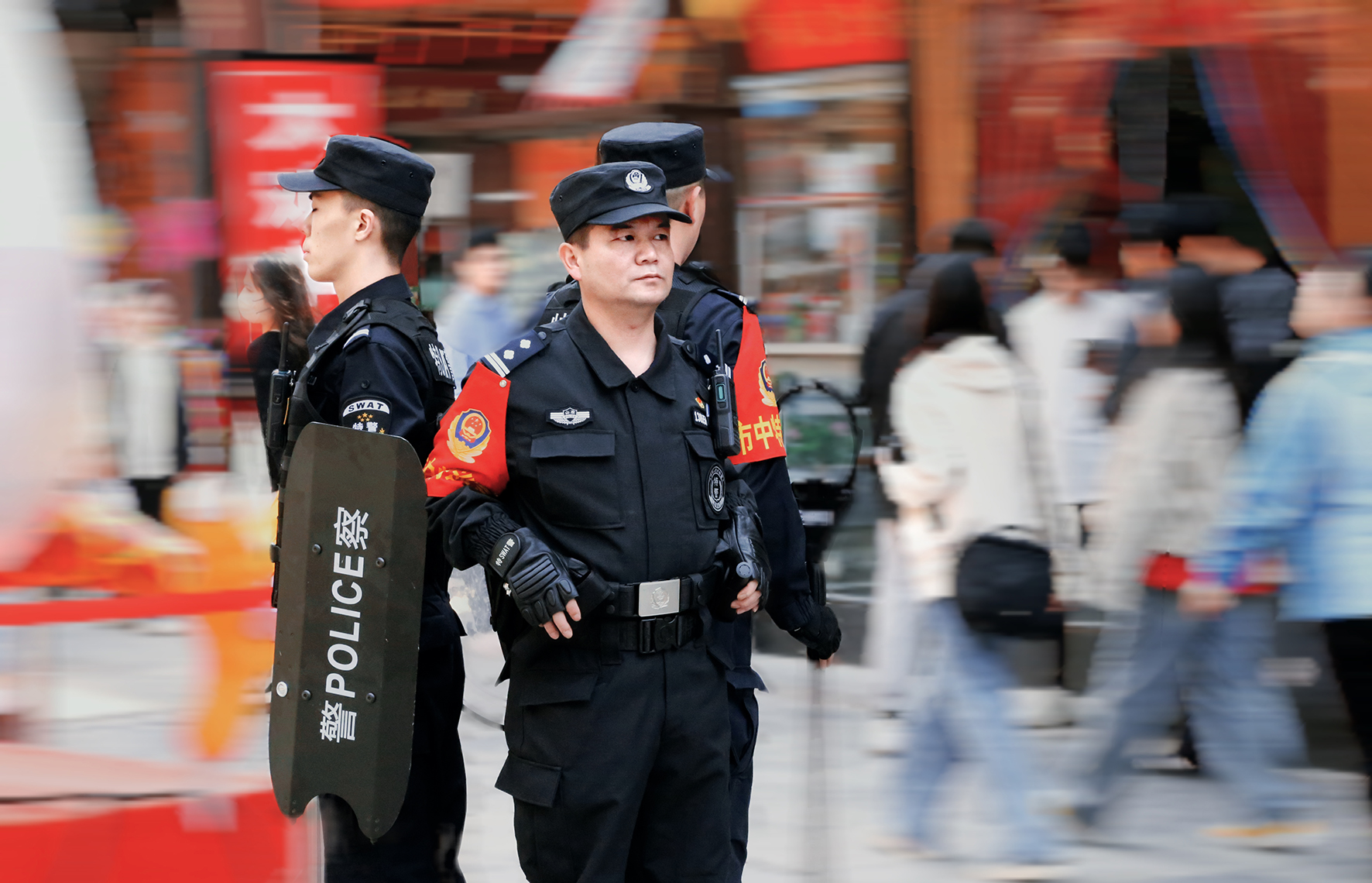 4月4日,安徽省巢湖市公安局民警在耳街商業(yè)區(qū)開(kāi)展晚間巡邏任務(wù)。