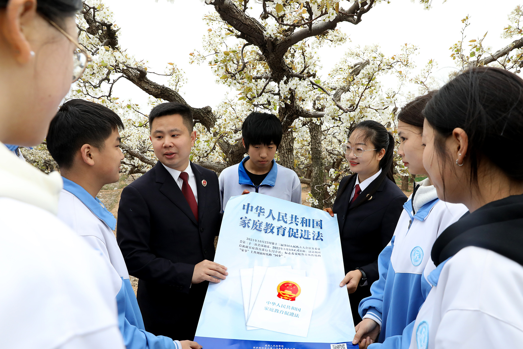 4月3日,河北省魏縣人民檢察院“小葵花”法治團隊開展 “‘家’倍守護”之走進梨園活動。
