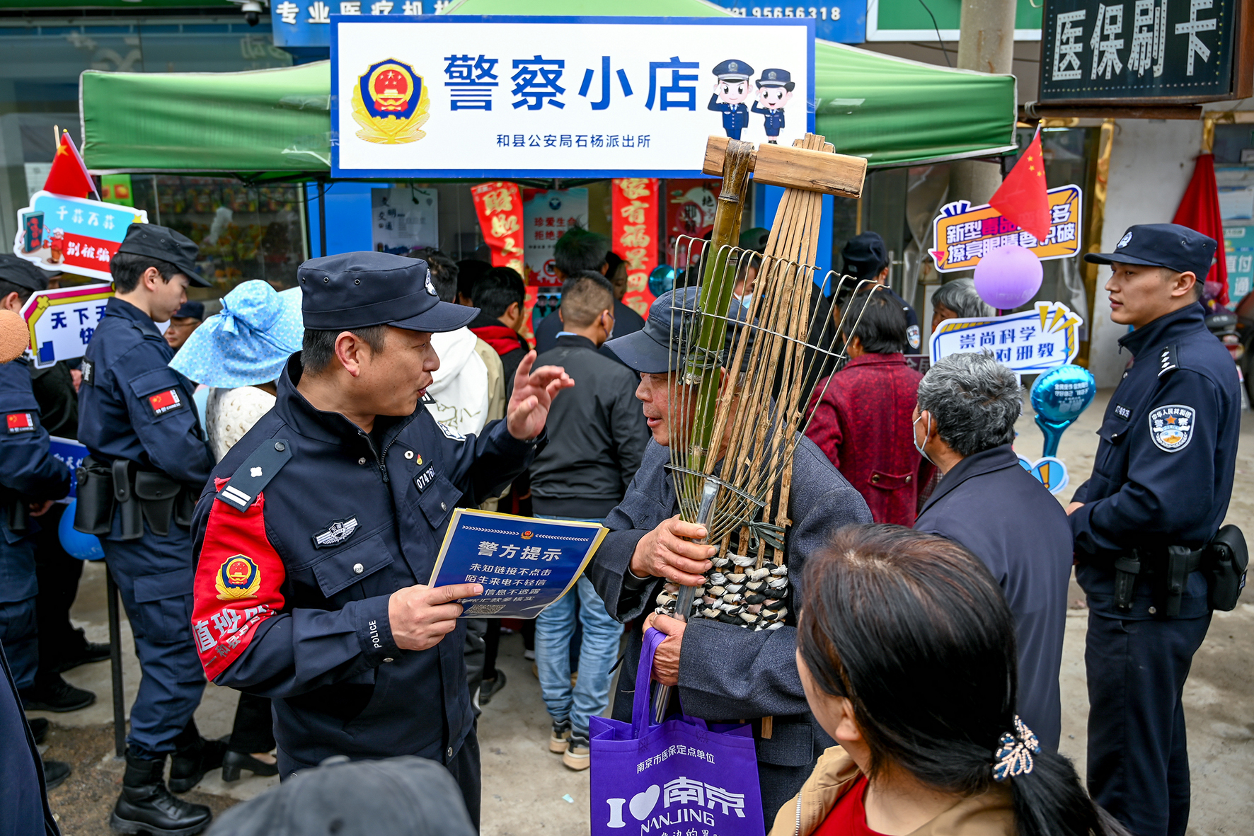 4月11日,農(nóng)歷三月初三,是安徽省馬鞍山市和縣石楊鎮(zhèn)綽廟社區(qū)一年一度群眾“趕廟會”的日子。和縣公安局在全力做好廟會安全服務保障的同時,“警察小店”也“開張營業(yè)”,禁毒、反詐、反邪教以及國家安全等各種法治宣傳吸引了許多趕廟會的群眾。