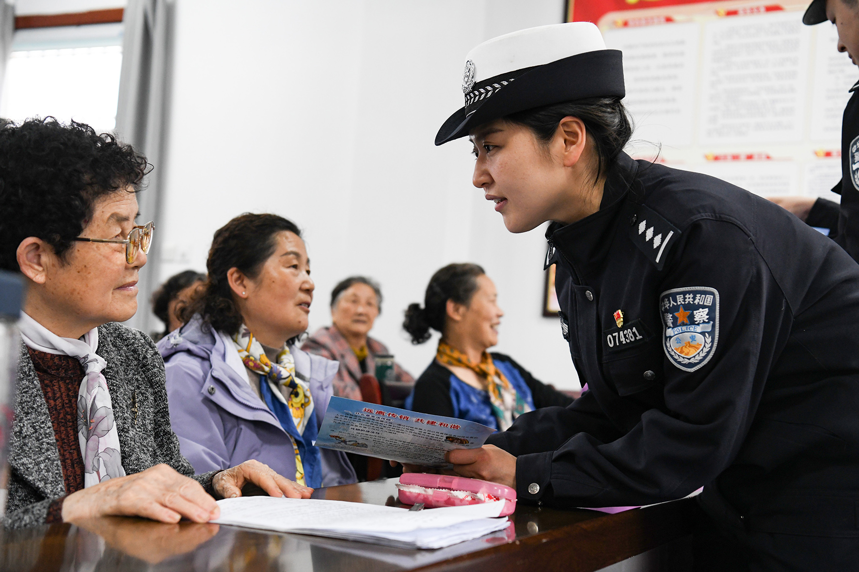 圖為民警為老年人宣講交通安全知識。