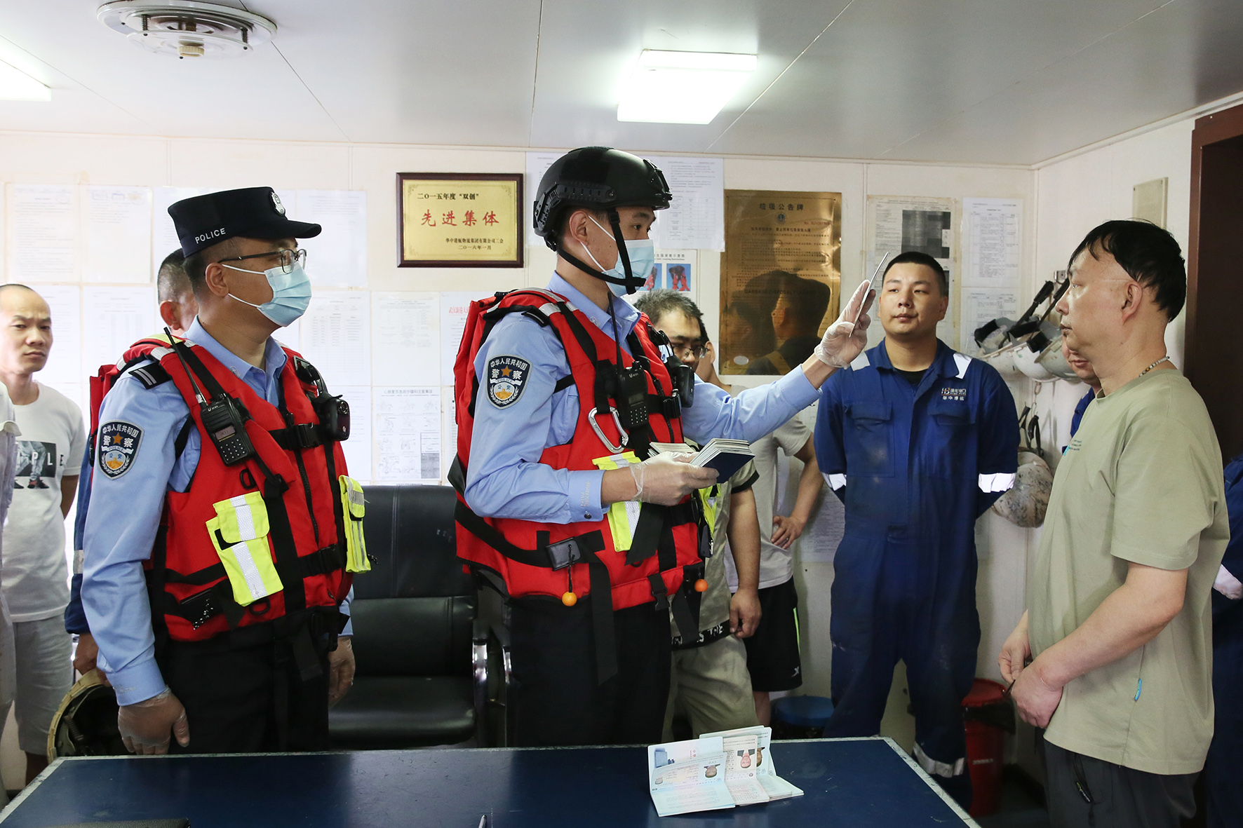 5月1日,珠海邊檢總站開(kāi)平邊檢站執(zhí)勤移民管理警察,為到港船舶開(kāi)通“綠色通道”,快速辦理入境手續(xù)。
