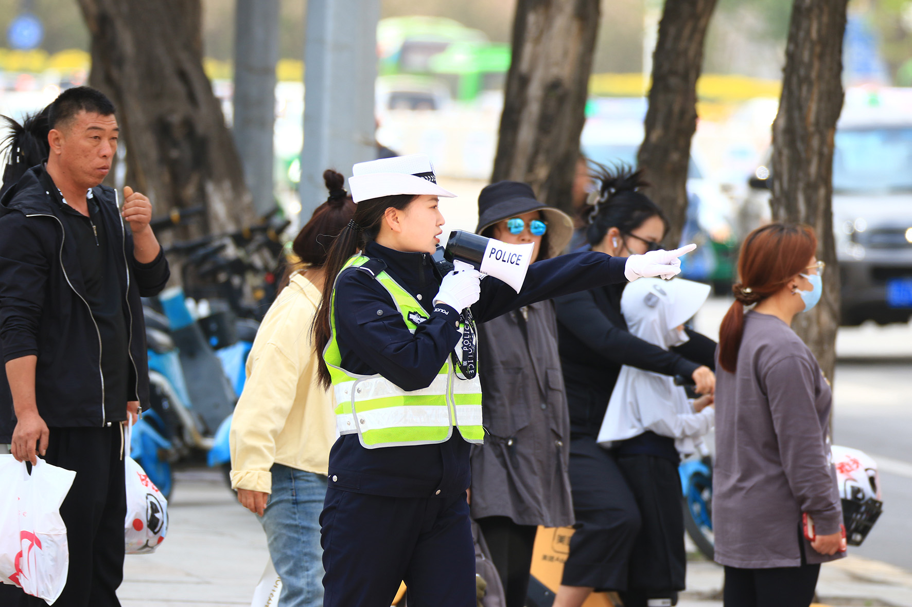5月4日,山東省濟(jì)南市公安局交警支隊(duì)市中區(qū)大隊(duì)女子中隊(duì)青年女警堅(jiān)守崗位,維護(hù)交通秩序,開(kāi)展街面巡邏,確保群眾平安出行。