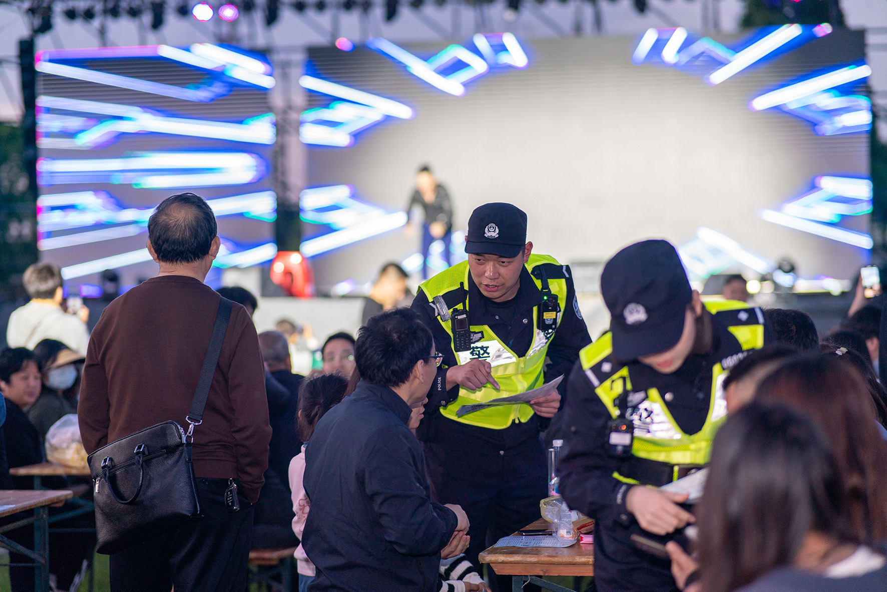 5月2日,上海市公安局崇明分局豎新派出所民警在電音節(jié)現(xiàn)場(chǎng)開(kāi)展巡邏守護(hù)。