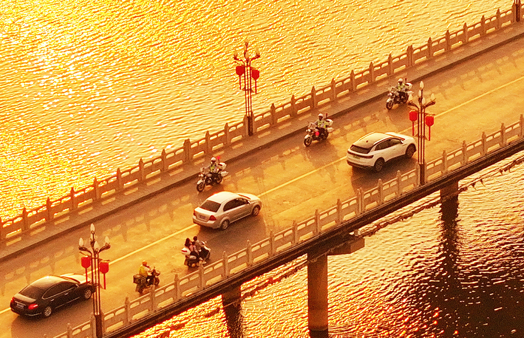 5月1日,山西省運(yùn)城市新絳縣公安局交警大隊(duì)古城中隊(duì)民輔警在汾河公路大橋巡查。