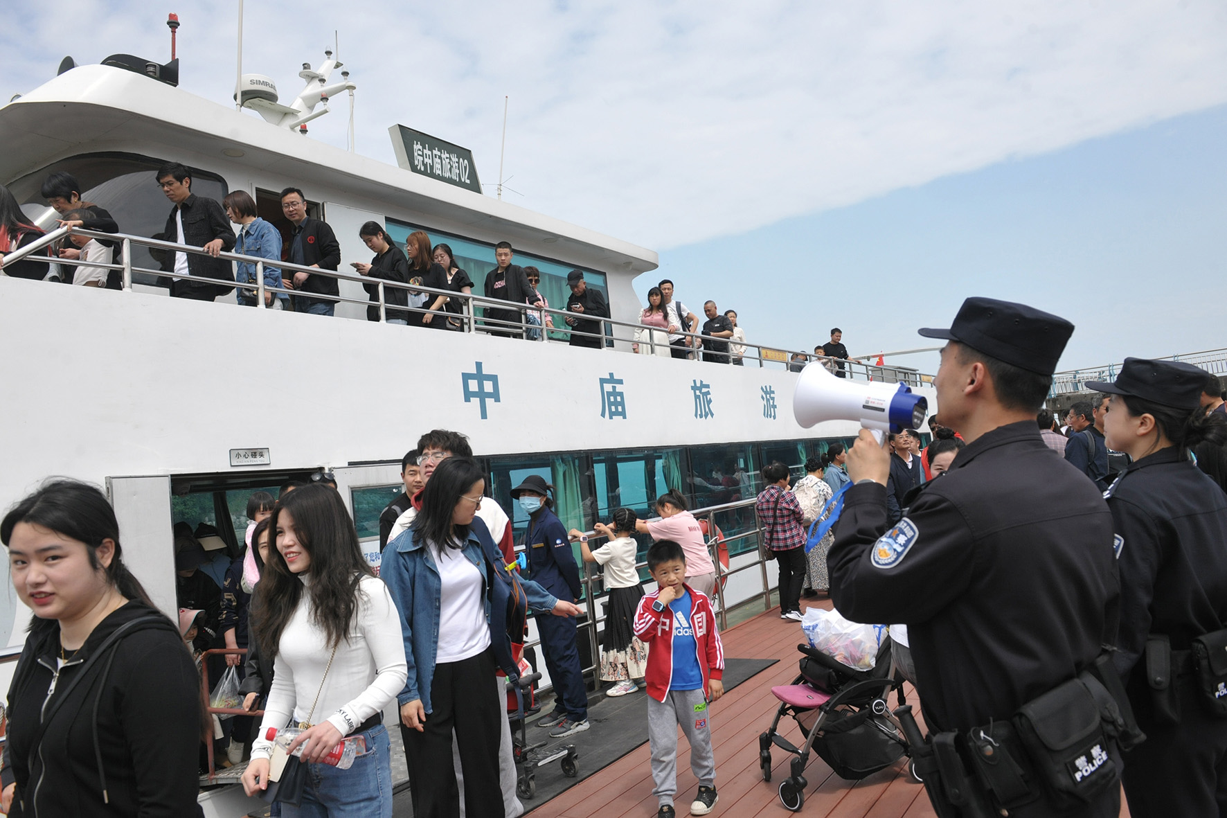 5月1日,安徽省巢湖市中廟旅游風(fēng)景區(qū)姥山島迎來(lái)游客高峰。巢湖市公安局開(kāi)啟“旅游警務(wù)”模式,在景區(qū)內(nèi)開(kāi)展矛盾化解、游客分流、提醒引導(dǎo)等工作。