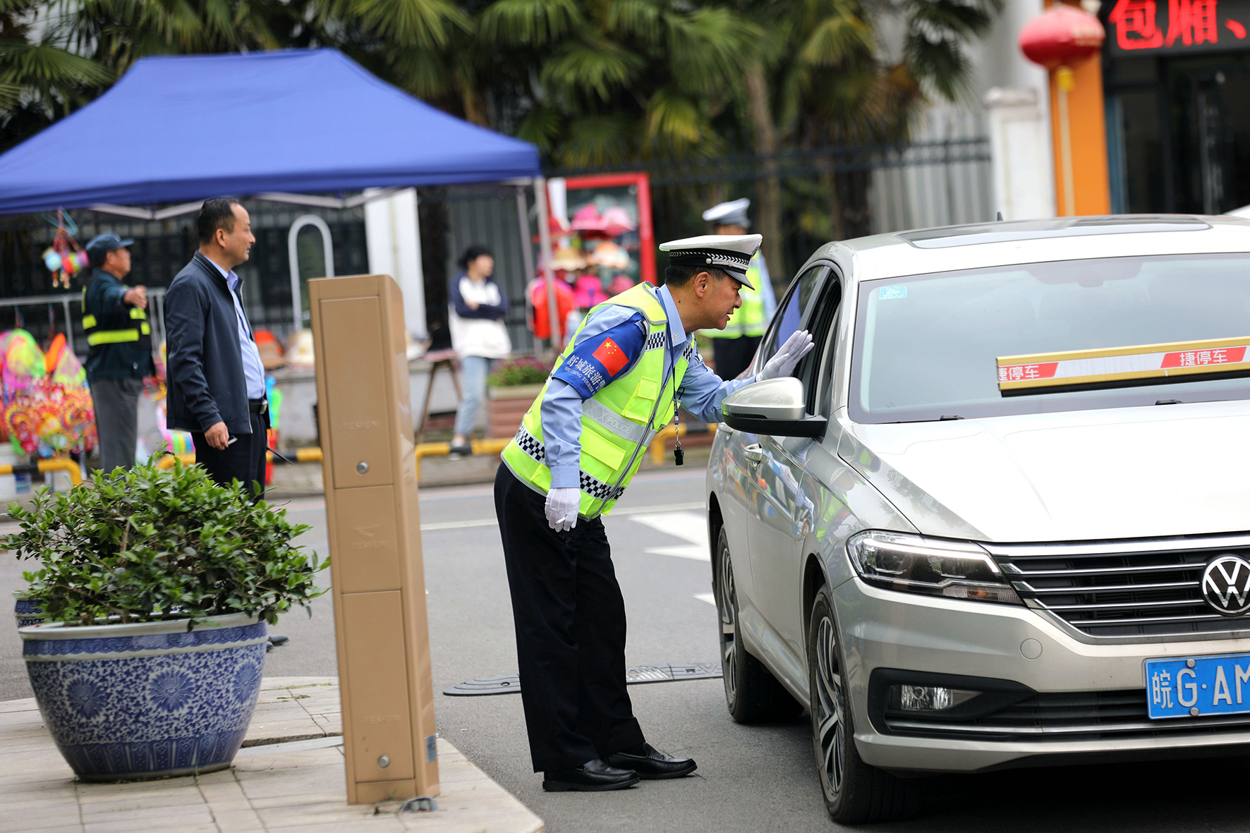 5月2日,安徽省舒城縣公安局旅游警察大隊(duì)民警輔警在游客較為集中的景點(diǎn)巡邏守護(hù)、疏導(dǎo)交通、為游客提供服務(wù)。