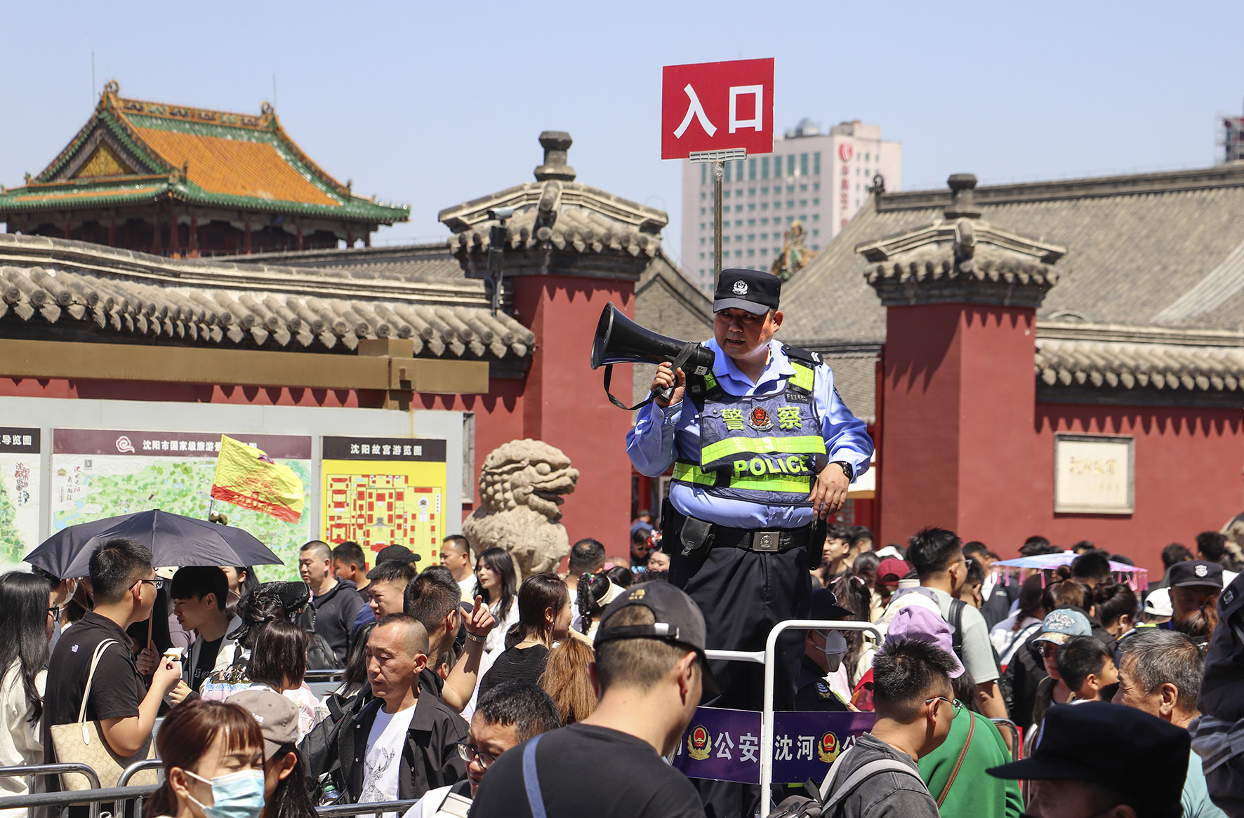 5月1日,遼寧省沈陽(yáng)市公安局沈河分局民警在沈陽(yáng)故宮執(zhí)勤崗維護(hù)秩序。