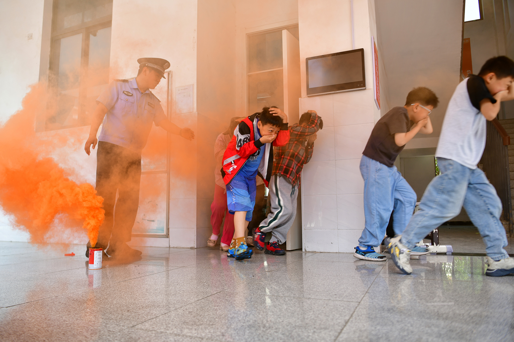 5月9日,安徽省阜南縣第三小學的學生們在民警的指導下開展防災逃生演練。全國防災減災日將至,阜南縣公安局城關派出所聯(lián)合第三小學開展防溺水、防震和逃生等防災減災知識普及和應急疏散演練等活動,提高學生應對自然災害突發(fā)事件的能力。