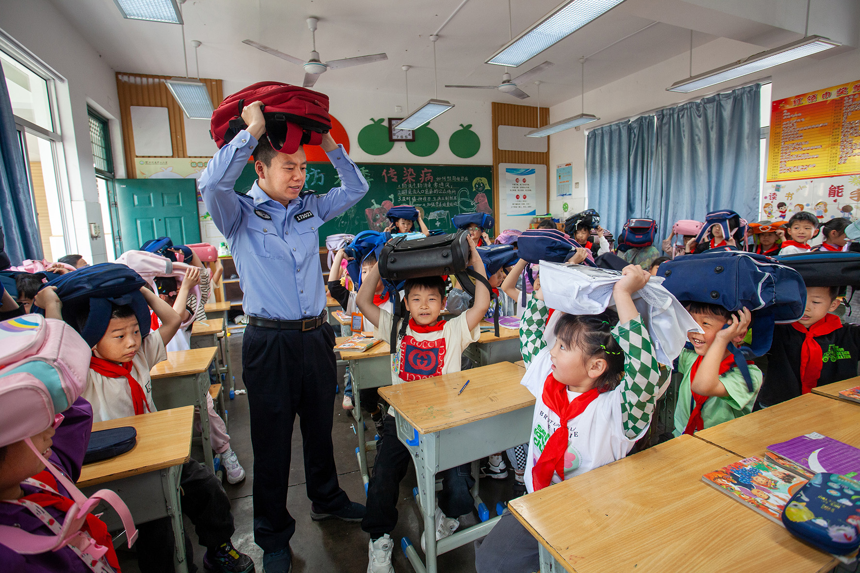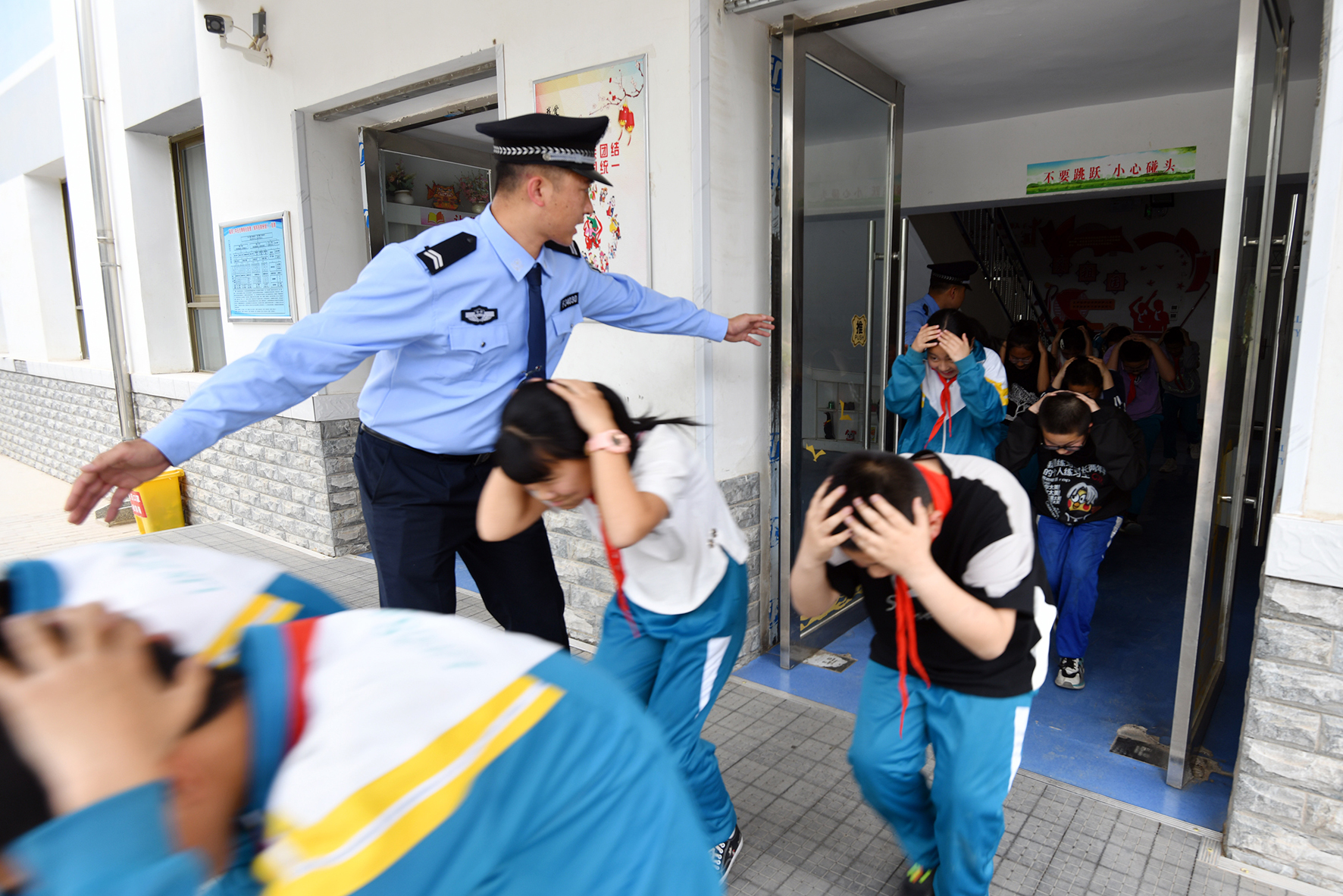 5月9日,安徽省合肥市公安局瑤海分局龍崗派出所民警走進(jìn)轄區(qū)學(xué)校開展防震減災(zāi)應(yīng)急疏散演練活動(dòng)。