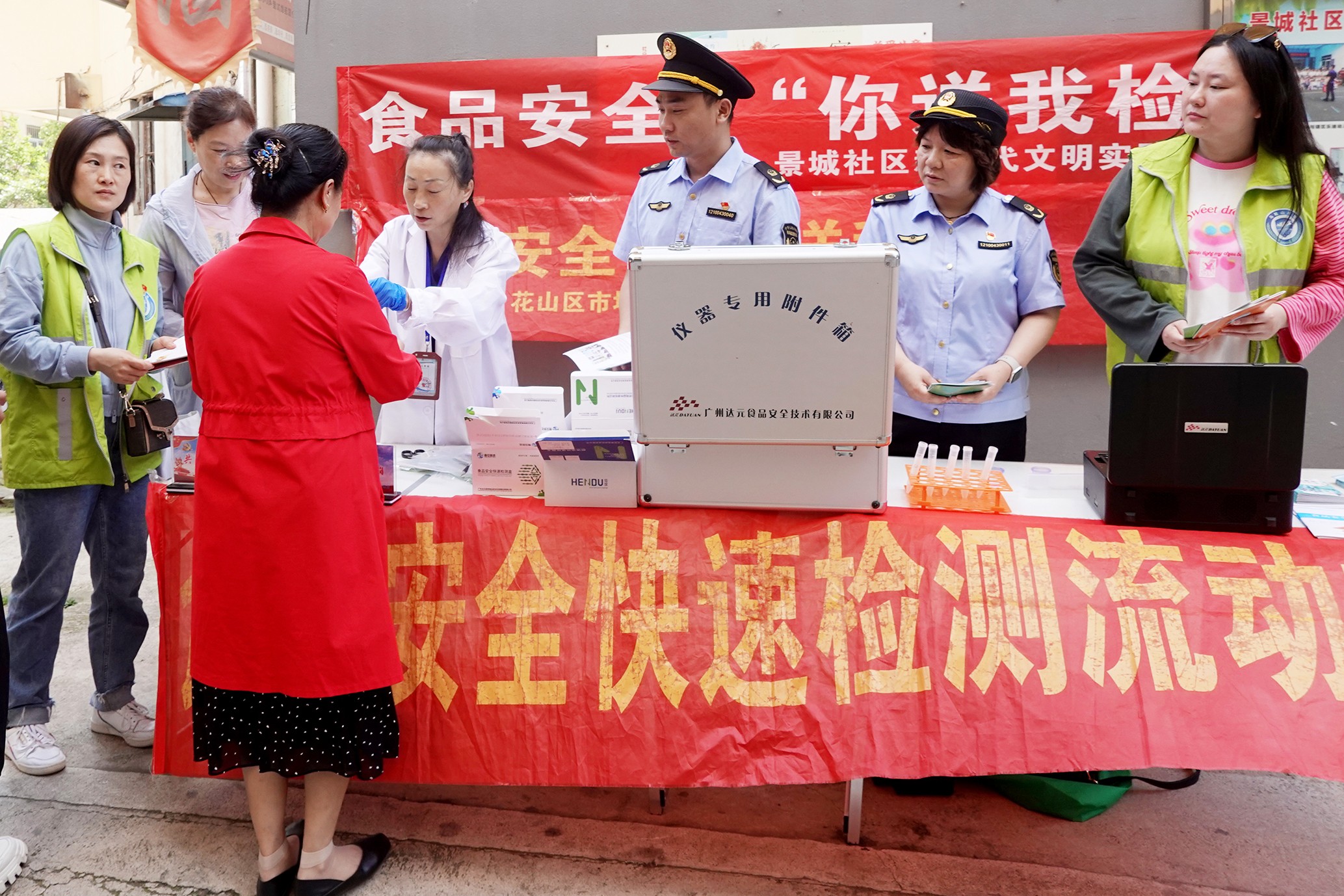 5月13日,安徽省馬鞍山市花山區(qū)桃源路街道景城社區(qū)聯(lián)合花山區(qū)市場監(jiān)督管理局桃源所,在師苑市場開展食品安全“你送我檢”活動,免費為群眾提供食品安全快速檢測服務(wù)。
