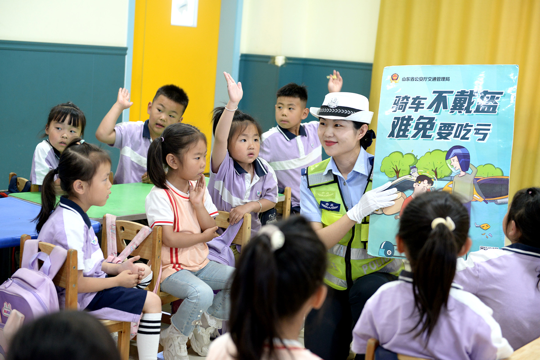 5月27日,山東省棗莊市公安局山亭分局交警大隊(duì)走進(jìn)轄區(qū)海子社區(qū)陽光幼兒園,以寓教于樂的方式,為小朋友們上了一堂生動有趣的交通安全教育課。