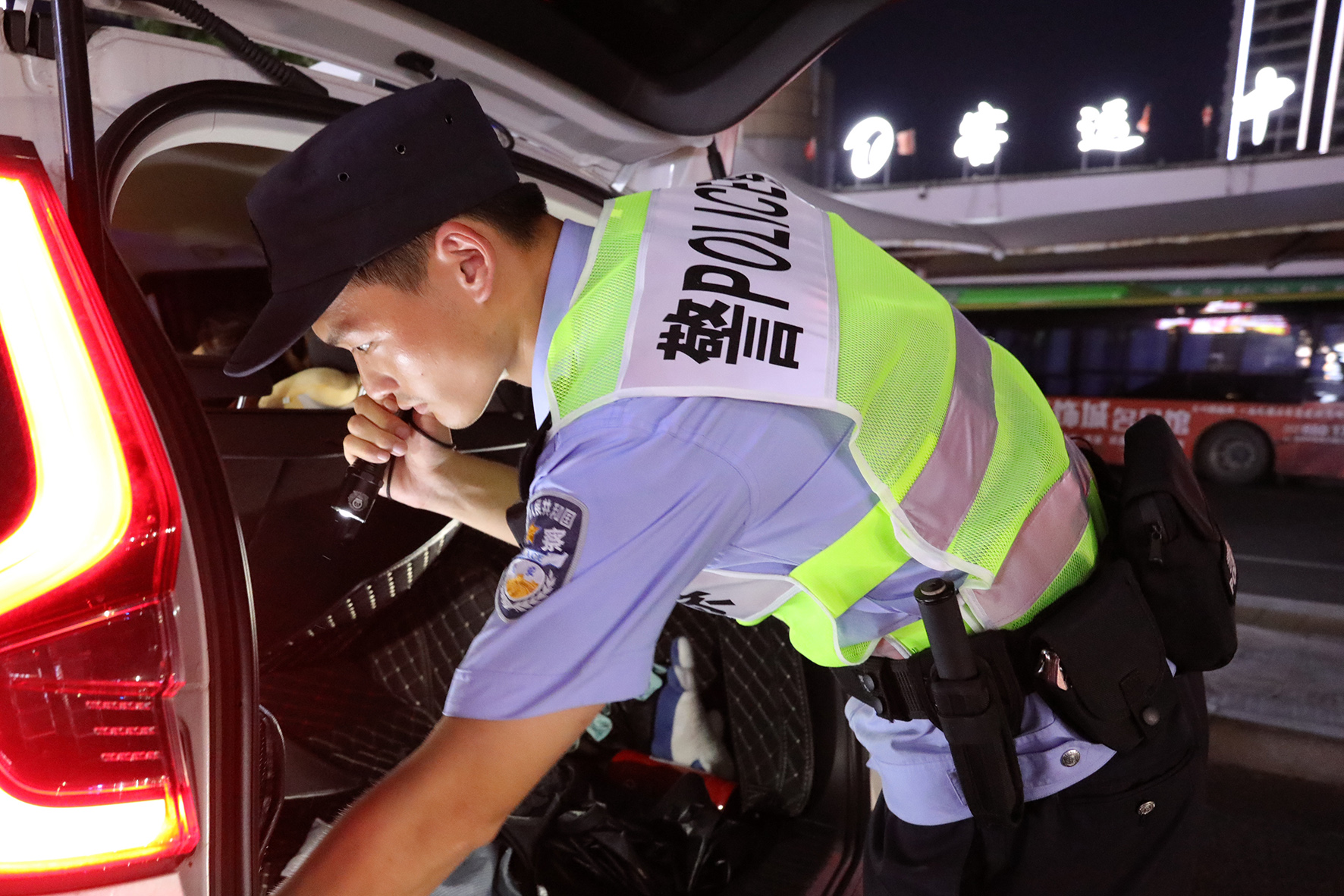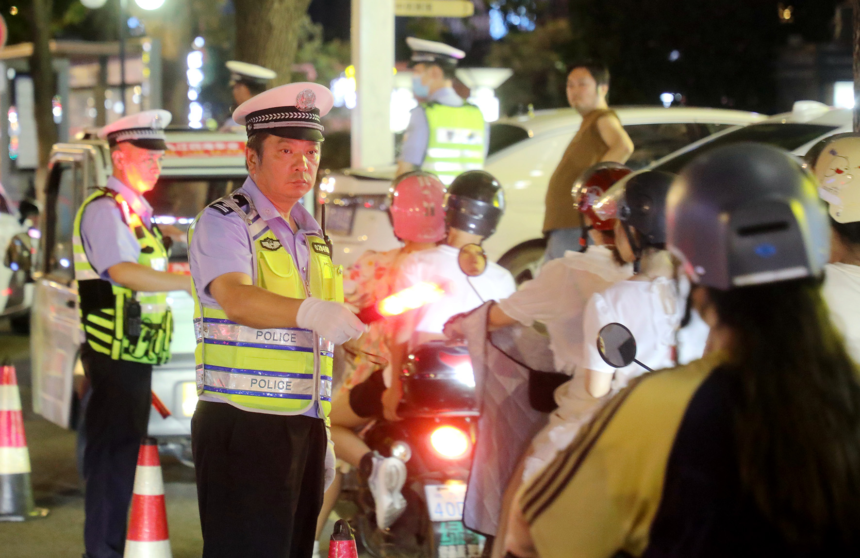 7月6日晚,安徽省合肥市公安局交警支隊瑤海大隊民警在街面嚴(yán)查交通違法行為。