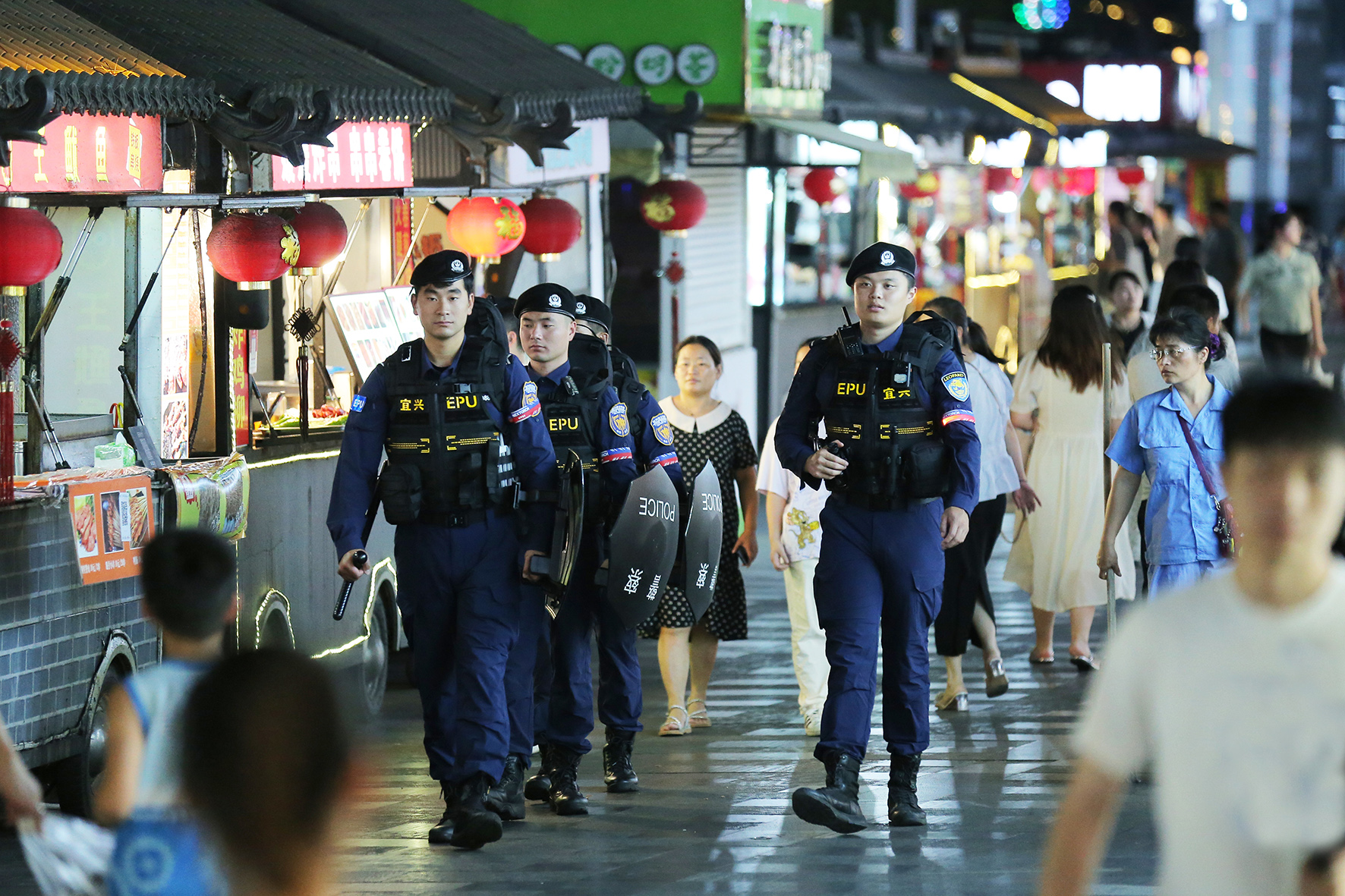 7月7日,江蘇省宜興市公安局巡特警EPU精英小隊囤警街面夜市,亮燈見警,守護(hù)夏夜平安煙火氣。