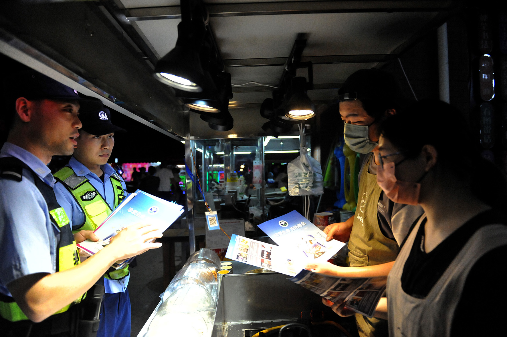 7月6日,山東省煙臺市公安局啟動全市夏夜治安巡查宣防第一次集中統(tǒng)一行動,加大社會面巡邏防控力度,消除社會面風(fēng)險隱患。
