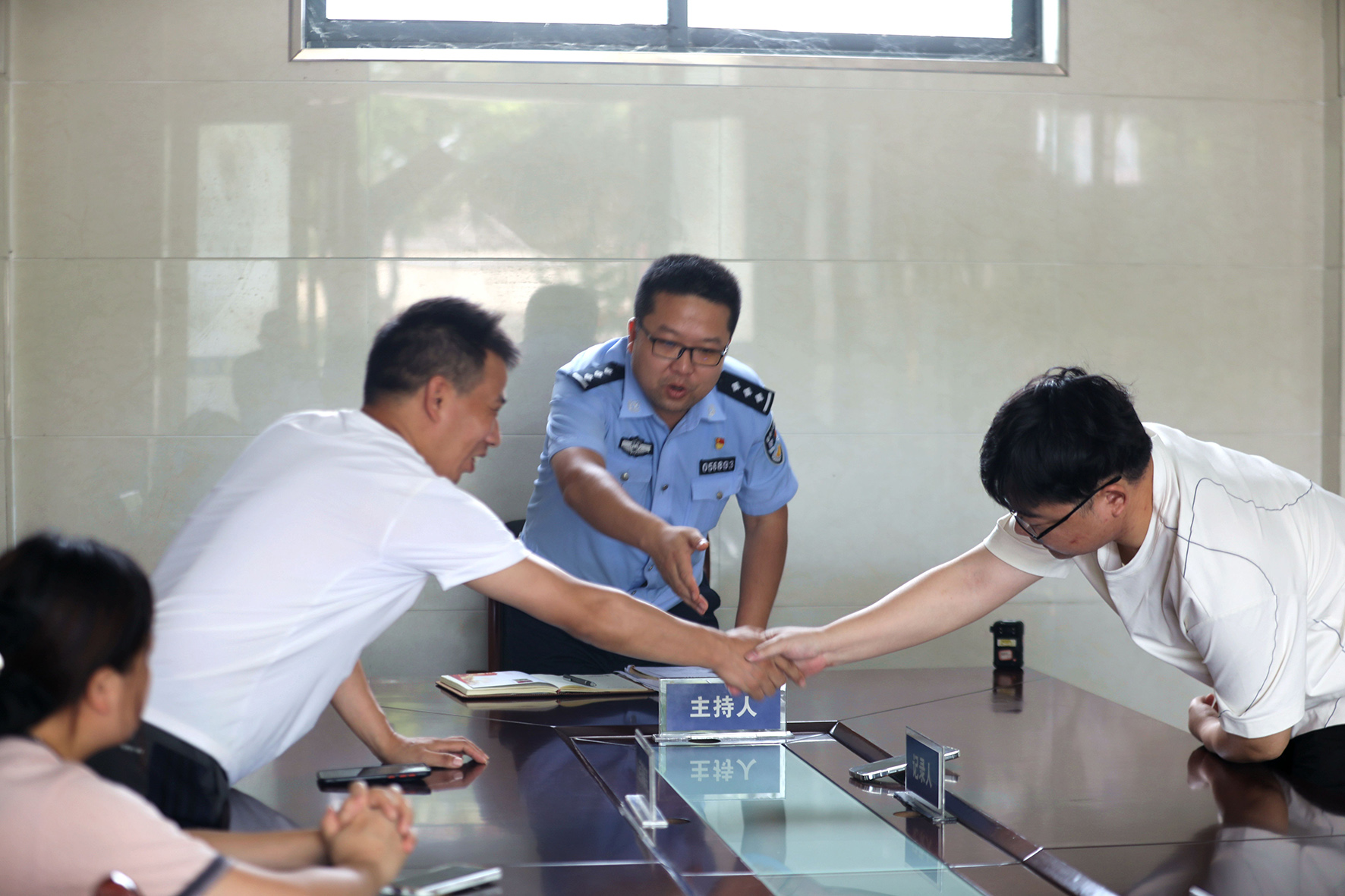 圖三:在民警努力下雙方當事人達成協(xié)議握手言和。