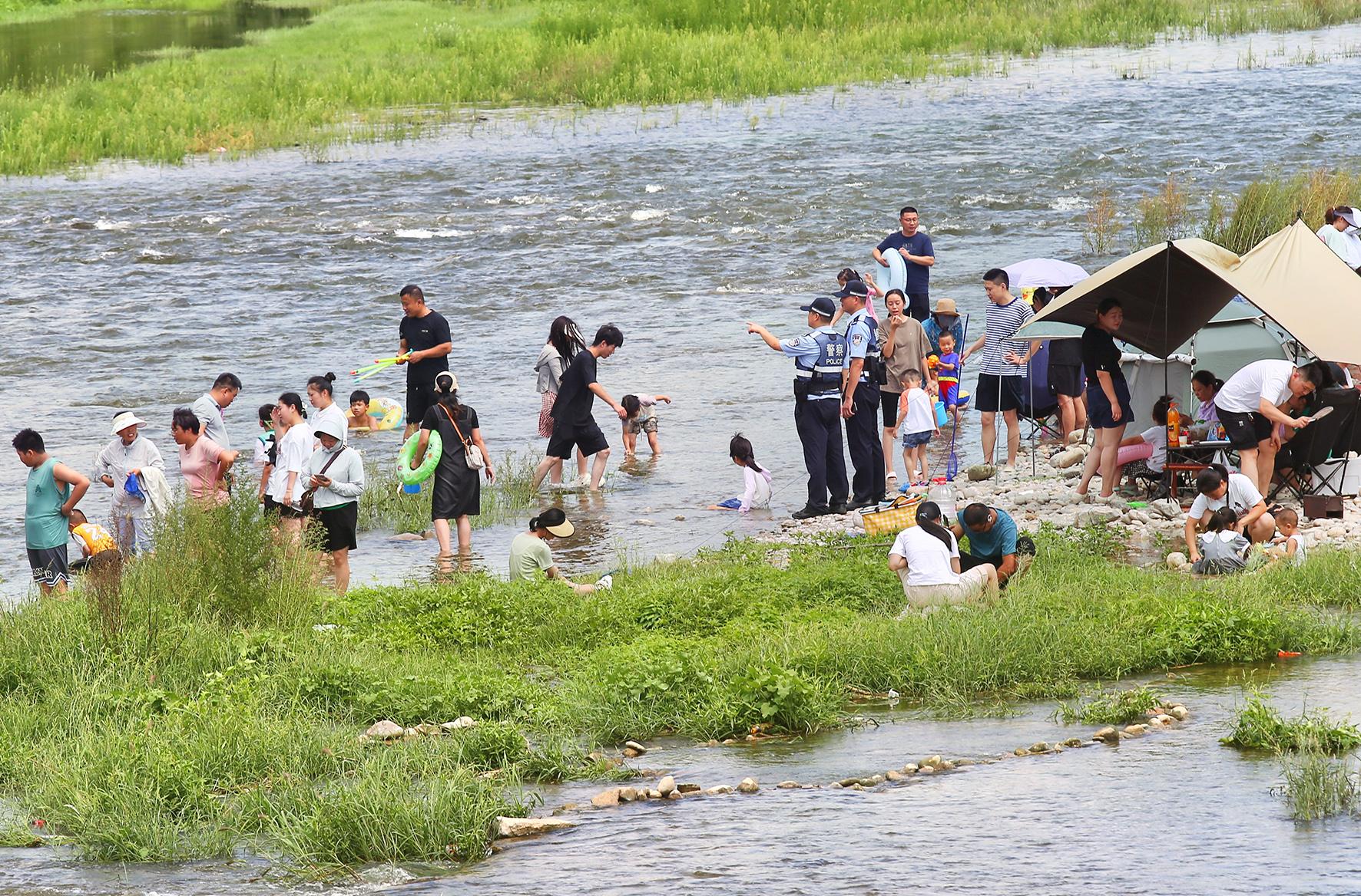 8月2日,山東省濟(jì)南市公安局市中區(qū)分局黨家莊派出所民警在玉符河附近巡邏,對(duì)下水游玩的市民游客開展安全教育。自夏季治安打擊整治行動(dòng)開展以來,濟(jì)南市公安局市中區(qū)分局持續(xù)強(qiáng)化景區(qū)巡防力度,全面加強(qiáng)隱患排查,全力做好安全宣講,為群眾提供服務(wù),確保轄區(qū)和諧安寧。